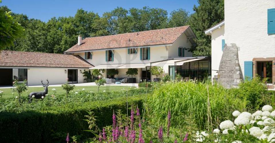 À seulement 12 minutes du centre de Genève, cette somptueuse demeure du XVIIIe siècle, entièrement rénovée en 2010 avec des matériaux d’exception, marie à la perfection authenticité et modernité. Nichée dans un parc paysager de près de 5’000 m², à l’abri des regards, elle offre un cadre de vie unique, empreint de sérénité. Ses vastes pièces de réception baignées de lumière sont reliées par une splendide verrière et desservies par un ascenseur. L’espace nuit compte 7 chambres, dont une suite parentale avec deux dressings et deux salles de bains. Une maison de gardien indépendante, un verger aux arbres fruitiers, et une ancienne écurie transformée en sublime piscine intérieure avec spa viennent parfaire ce lieu d’exception. Prestige, volumes remarquables, confort absolu et sécurité optimale : cette propriété rare séduira les amateurs de biens uniques.