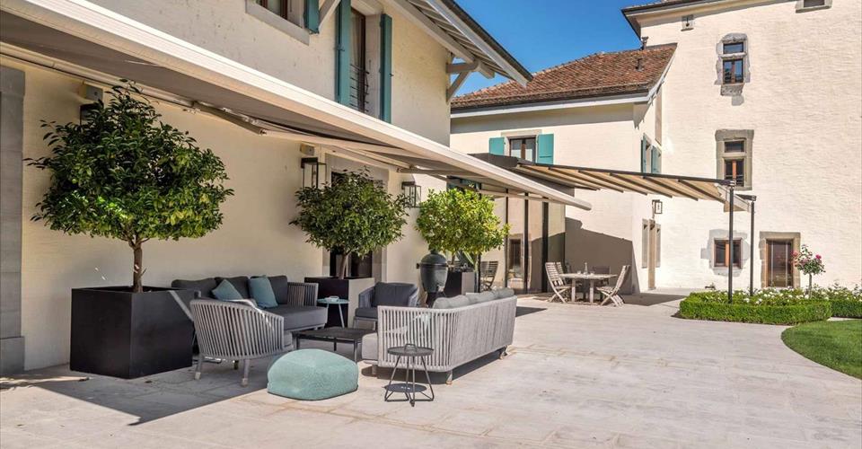 Au cœur de la campagne genevoise, avoisinant de vastes champs ainsi que le charmant village du Carre d’Aval, cette splendide propriété baignée de lumière et implantée sur une parcelle d’environ 5’000 m2 offre un cadre de vie exceptionnel. Composé de plusieurs bâtiments, dont une maison forte datant du XVIIIème siècle, l’ensemble a été entièrement rénové avec des matériaux de qualité en 2010. Orientée plein sud, la propriété allie modernité et authenticité. Elle comprend de nombreuses pièces de réception reliées par une splendide verrière, le tout desservi par un ascenseur. La partie nuit dispose de 7 chambres à coucher ainsi que d’un espace parental comprenant une spacieuse suite, deux dressings et deux salles de bains. Une maison de gardien complète la propriété, et offre deux chambres additionnelles. Vous serez transportés par l’ancienne écurie reconvertie en piscine intérieure ainsi que par le magnifique jardin d’une surface d’environ 4’400 m2, permettant de préserver le calme et l’intimité de la propriété. Un verger attenant de 1’000 m2 sur lequel se trouvent des pommiers, poiriers et autres arbres fruitiers agrémente l’ensemble. Deux garages et de nombreuses places extérieures couvertes complètent le tout. Cette propriété saura séduire les clients en quête d’un bien unique.