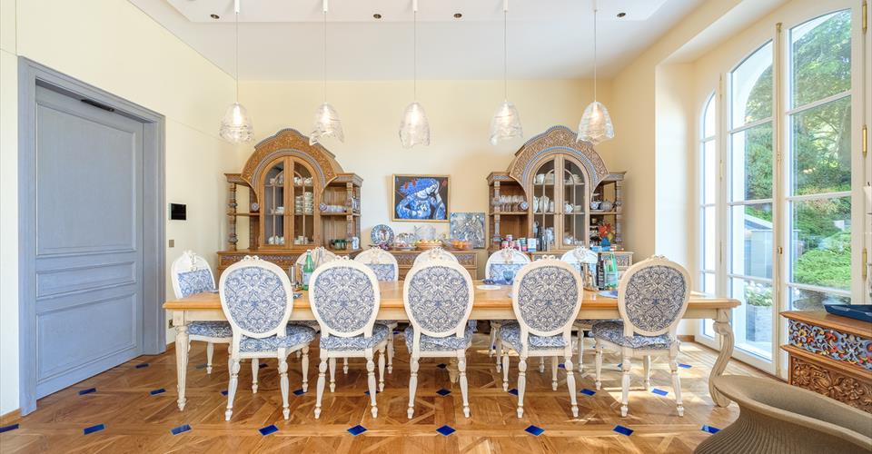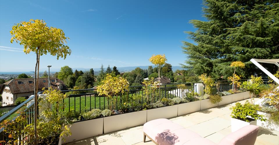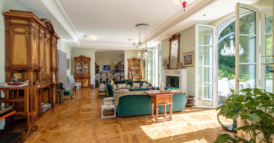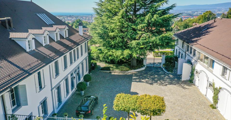 Cette somptueuse propriété du 19ème siècle a été totalement rénovée en 2020 avec beaucoup d’élégance, des choix de matériaux exceptionnels apportant ainsi un ensemble architectural unique. Située dans un quartier résidentiel calme et très privatif de la commune de Jouxtens-Mézery, à 10 mn du centre de Lausanne et 40 mn de Genève, son emplacement est stratégique et hors nuisances. Cette bâtisse associe avec talent confort et modernisme, volumes exceptionnels et une parfaite harmonie des espaces. Elle est composée de deux autres bâtiments. Le premier d’une surface de plus de 500 m2 comprend un logement, les pièces techniques et les garages et le second reçoit la partie piscine et spa. Elle est implantée sur une parcelle de plus d’un hectare comprenant un parc de jeux pour enfants, un jardin et un pavillon japonais offrant une déclinaison de plusieurs variétés d’essences et d’arbres du Japon, un coin potager avec toute la technique d’arrosage professionnelle. La parcelle a été conçue par des architectes paysagers de renom et offre un environnement exceptionnel. Il se dégage un sentiment profond de sérénité et de volupté. Toutes les technologies de pointe et les systèmes écologiques sont utilisés. La propriété bénéficie d’une sécurité absolue avec un système domotique performant. Conçue avec soin et détails, la propriété principale se compose de 9 chambres à coucher pour une surface de plus de 1’000 m2 répartie sur trois niveaux et desservis par un ascenseur. Le rez -de- chaussée distribue un vaste espace salon avec cheminée et de très belles hauteurs de plafonds, une grande salle à manger, un jardin d’hiver magnifiquement décoré, un salon bibliothèque décoré de bois précieux, un home cinéma et une magnifique cuisine semi professionnelle. Toutes ces pièces sont orientées sur la terrasse et le jardin superbement arboré. Un WC visiteurs, une chambre avec salle de bain pour le personnel, plusieurs pièces de rangements complètent ce niveau. Un accès souterrain mène directement à la piscine couverte. Le premier niveau accède sur une grande mezzanine qui dessert la suite parentale avec un grand dressing, une salle de bain en-suite et une belle terrasse avec une belle vue sur le lac. Quatre autres chambres à coucher dont deux avec salle de bains communicantes et une autre salle de bain sont à disposition à cet étage. Le second niveau dans les combles offre une pièce de 127 m2 d’où l’on peut admirer une splendide charpente d’origine. Elle sert actuellement de salle de jeux et comprend une mezzanine. Cet étage accueille également trois chambres à coucher et trois salles de bains. Le second bâtiment desservi sur trois niveaux par un ascenseur comprend sur une première aile un salon avec une cuisine ouverte, deux chambres avec salles de bain en-suite, un salon/mezzanine et des rangements. Un accès direct au garage est possible. La seconde aile offre un espace loft ouvert avec mezzanine pouvant servir de bureau ou autre. Le pavillon abritant une sublime piscine couverte de 18x 8 m est doté de grandes baies vitrées donnant directement sur la terrasse et le jardin. La partie spa, parfaitement aménagée avec hammam, sauna, douche complète ce superbe espace de loisirs et de détente. Des parkings couverts pour 4 voitures et de nombreuses places à l’extérieur peuvent accueillir les invités.