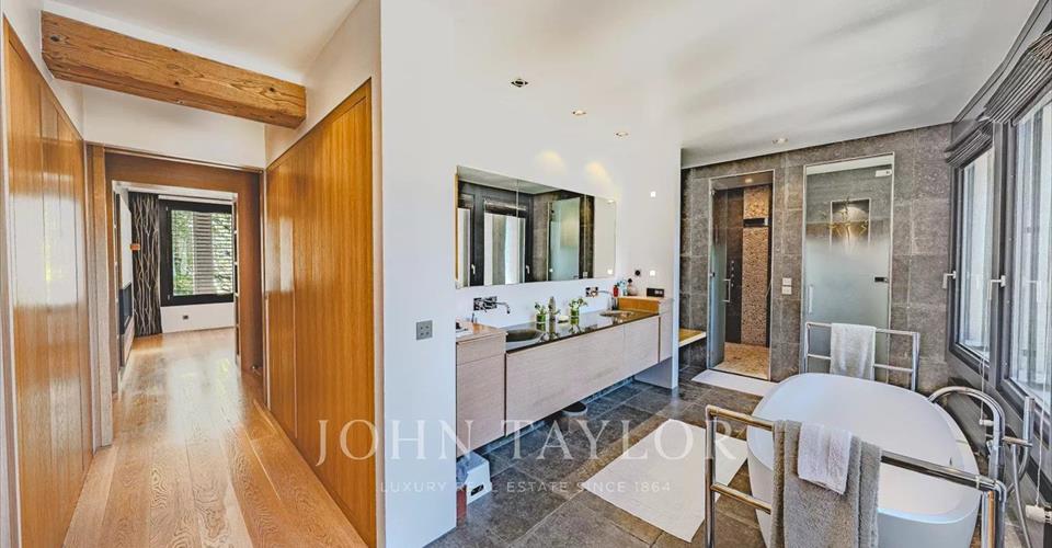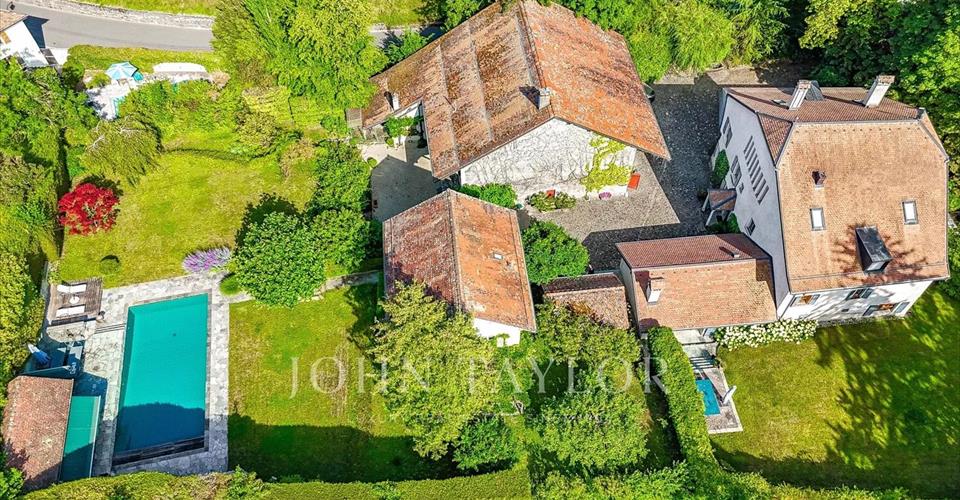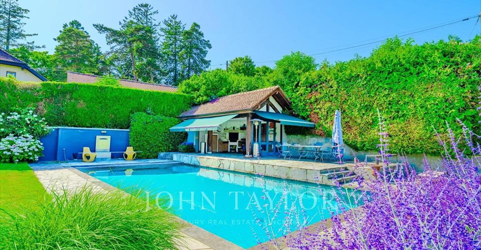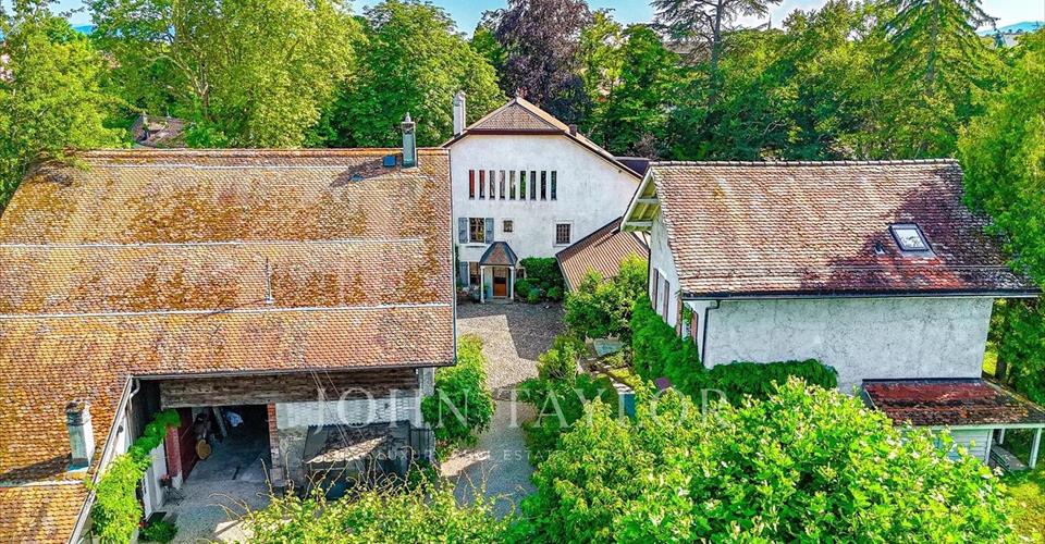 Au coeur du charmant village de Commugny, cette propriété d’exception se situe dans un quartier résidentiel paisible, proche des écoles et de la gare de Coppet. Présentation générale: Surface: environ 4?600?m², soigneusement arborée, traversée par deux petits ruisseaux. Matériaux & rénovation : entièrement rénovée en 2009, avec des finitions haut de gamme. Composition du domaine Maison principale (construction 1830) : Rez-de-chaussée : Vaste salon avec cheminée, Majestueux escalier en chêne d’époque, Cuisine centrale moderne avec îlot et cheminée, Salle à manger attenante ouvrant sur une terrasse avec barbecue. Également : salle TV, salle à manger indépendante, cave à vin climatisée, grand vestibule. 1er étage ? espace famille : six chambres spacieuses et quatre salles de bains. 2e étage ? suite parentale : chambre avec cheminée, dressing, bureau aux charpentes apparentes, salle de bain avec douche et hammam et un espace fitness avec TV. Combles : entièrement aménagés en salle de jeux, possibilité de créer un dressing, bureaux, des chambres. Maison d’invités (~200?m²) : parfaite pour recevoir famille ou amis en toute indépendance. Grange (~1?960?m³) : actuellement aménagée en double garage et atelier. Potentiel énorme, à usage personnel ou professionnel (bureaux professionnels, galerie d’art, passionnés d’automobiles, salle de sport haut de gamme, spa…) Piscine et son pool?house Nombreuses places de parking