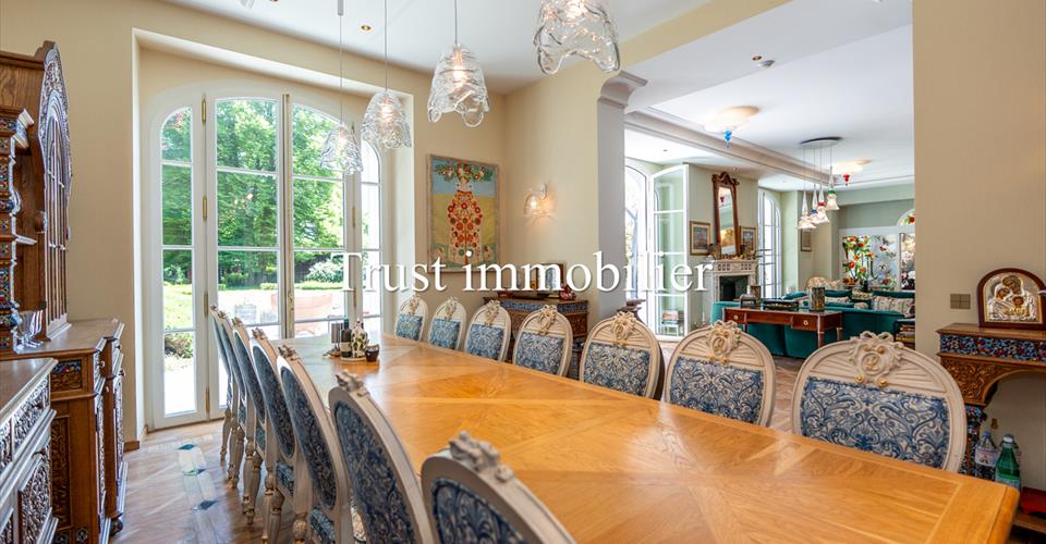 Découvrez une somptueuse maison de maître à Jouxtens-Mézery, à seulement 10 minutes du centre de Lausanne Trust Immobilier, agence immobilière à Canton Vaud, Genève et Crans-Montana vous propose Ref. 6034 -TLS.C À seulement 10 minutes de Lausanne, cette somptueuse Maison de Maître du XIXe siècle, magnifiquement rénovée en 2020 avec des matériaux nobles, vous offre un cadre de vie idyllique. Sur une parcelle de 10 000 m2, où une majestueuse demeure côtoie une dépendance accueillante pour vos invités et votre personnel, un pavillon de bien-être dédié à la détente, et même une maison de méditation pour une sérénité absolue. Laissez-vous surprendre par un jardin enchanteur, parsemé d’arbres fruitiers, d’un potager luxuriant et d’une aire de jeux pour les enfants. La Maison de Maître : Un écrin de confort et de raffinement avec 9 chambres à coucher Le rez-de-chaussée vous accueille avec un vaste espace de réception baigné de lumière, avec un salon et une salle à manger s’ouvrant sur une terrasse et un vaste jardin. Une bibliothèque chaleureuse, une salle de cinéma immersive, une suite d’invités élégante et une cuisine équipée de marques de luxe complètent ce niveau, sans oublier de nombreux espaces de rangement astucieusement intégrés. Le premier étage, accessible par ascenseur, abrite une suite parentale somptueuse avec bureau, dressing et une vaste salle de bain. Quatre autres chambres, dont deux communicantes, et une salle de bain supplémentaire offrent un espace familial idéal. Le deuxième étage propose deux suites avec leurs propres salles de bain, une chambre supplémentaire avec salle de bain attenante, et une spacieuse salle de jeux. Les combles aménagés en une incroyable salle de jeux avec toboggan et cinéma raviront les enfants de tous âges. Dépendance : L’art de recevoir en toute indépendance Accueillez vos proches dans un appartement indépendant, offrant deux suites, un grand salon, une mezzanine et une cuisine équipée. Un appartement dédié au personnel, avec cuisine, salon et chambre complète cette partie de propriété. Bien-être et sérénité : Un pavillon dédié à la relaxation Plongez dans un univers de détente absolue dans le pavillon indépendant abritant une magnifique piscine intérieure, un hammam, un sauna et un espace de repos extérieur. Stationnement : un garage pour cinq voitures et un parking extérieur peut accueillir jusqu’à dix véhicules. Votre rêve d’une vie paisible et élégante commence ici. Contactez-nous pour une visite exclusive. www.trustimmobilier.ch