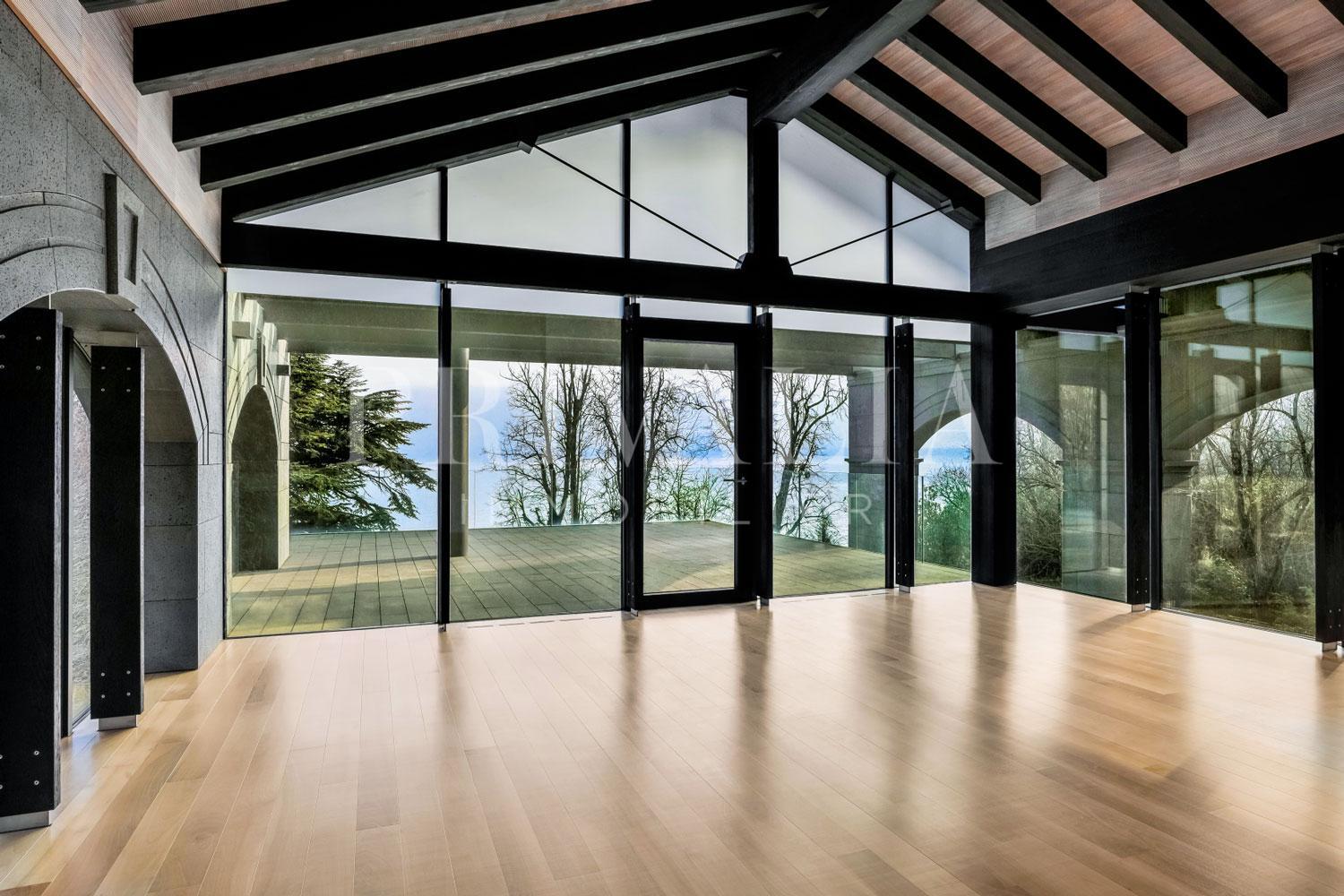 Située dans la commune prisée de Dully, idéalement positionnée entre Genève et Lausanne, cette propriété unique en son genre est un véritable chef-d’œuvre architectural contemporaine. Édifiée sur une parcelle magnifiquement arborée de plus de 5’700 m2, en bordure immédiate du lac Léman, la propriété de plus de 1’200 m2 utile et de 10 chambres, bénéficie de panoramas saisissants sur les eaux scintillantes et les Alpes, avec vue dominante sur le Mont-Blanc.