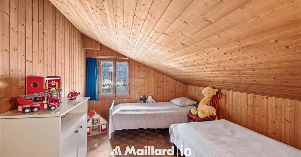 Exclusivité Maillard Immobilier! Joli chalet mitoyen situé au centre du village de Morcles bénéficiant d’une agréable vue sur les montagnes environnantes. Idéal pour les amoureux d’activités sportives de montagne et en quête de tranquillité, ce chalet est en parfait état d’entretien mais nécessiterait quelques travaux de rafraichissement selon les goûts de chacun. Distribué sur trois étages, il se compose comme suit: Rez-supérieur: Un sas d’entrée Un séjour avec poêle à bois et accès au balcon orienté Sud Une cuisine habitable et semi ouverte sur le séjour Une chambre à coucher double Une salle de bain avec baignoire et WC une trappe accédant au rez-inférieur (local technique et cave) Combles: Une chambre idéale pour enfants mais pas considérée habitable vu sa hauteur de plafond Un galetas non isolé (possibilité de transformer en 3ème chambre) Rez-inférieur : Local technique Cave N’hésitez pas à nous contacter pour une visite! Situation Morcles est une localité et une ancienne commune suisse du canton de Vaud, située dans la commune de Lavey-Morcles. Elle offre un cadre de vie paisible et authentique. Nichée à flanc de montagne, elle bénéficie d’une vue imprenable sur les paysages environnants, des vallées verdoyantes aux sommets enneigés des Alpes. Morcles se distingue par son ambiance conviviale, son patrimoine culturel riche et ses nombreuses activités de plein air. Accessibilité L’entrée de l’autoroute A9 se situe à moins de 20 minutes de Morcles, permettant ainsi de rejoindre facilement les villes comme Montreux en 40 minutes et Martigny en 30 minutes. En revanche, il n’y a pas de transports publics à Morcles. L’arrêt de bus le plus proche se trouve à Lavey-les-Bains, à 15 minutes en voiture. Quant à la gare de St-Maurice, elle est à 20 minutes en voiture. Écoles Les enfants commencent leur scolarité aux écoles primaires sur les sites de Lavey (1-4H) et St-Maurice (1-8H). Pour le cycle d’orientation, ils se rendent à Saint-Maurice, où ils terminent leur parcours scolaire obligatoire. L’UAPE Les Petits Lutins au collège de Lavey-Village offre 24 places d’accueil pour les élèves de la 1H à la 8H. La gestion administrative de cette structure est gérée par le réseau ” Enfants Chablais “. Commodités La commune abrite notamment une épicerie. La proximité avec la commune de Lavey-Morcles (Lavey-Village, Lavey-les-Bains) et de Saint-Maurice offre à ses habitants un accès à une gamme variée de services et commerces. Loisirs La commune de Lavey-Morcles est animée par de nombreuses sociétés locales. Quelques-unes d’entre elles sont citées ci-après : Amies Gym Amicale Morclane Amis de Morcles Archers Roccans Badminton Club Lavey Carna Club Lavey Fanfare de Lavey FSG Lavey Ski-Club Lavey Morcles est entourée d’une nature préservée, idéale pour les amateurs de randonnées, de VTT et de sports d’hiver. Les sentiers balisés vous invitent à explorer des panoramas spectaculaires et la faune locale. Lavey-Morcles en bref Localités rattachées : Lavey-Village, Lavey-les-Bains, Morcles, Eslex District: Aigle Sobriquet: Les Rocans Habitants: 1022 hab. (31 décembre 2023) Superficie: 14,19 km2 Taux d’imposition : 71.5 Site web: https://lavey.ch/ Altitude de Morcles : 1’160 m Travaux Chaudière à mazout remplacée en 2021 toiture refaite en 2000