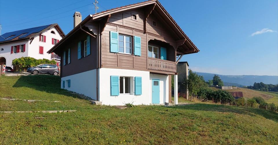 Rances villa-chalet Pour les amoureux de la nature sur une belle parcelle dominante de 1’934 m2 cadre idéal pour les enfants ou pour détenir des animaux domestiques ou petit animaux de ferme. Villa-chalet de 1944 rénovée en 2025 Rez supérieur: séjour avec cheminée et coin à manger, accès au balcon. Cuisine indépendante entièrement équipée. WC visiteurs. Rez inférieur : 2 chambres dont une avec accès sur la terrasse et le jardin. Une salle d’eau avec baignoire, wc, lavabo et colonne de lavage Galetas : espace de rangement accessible par un trappon. Extérieurs : 2 places de parc réduit 3.3 m2 Terrasse et grand jardin arboré, idéal pour les propriétaires d’animaux. A 6 MINUTES D’ORBE 15 MINUTES DYVERDON 1439 Rances se situe dans le district de Jura-Nord vaudois, dans le Canton de Vaud.
