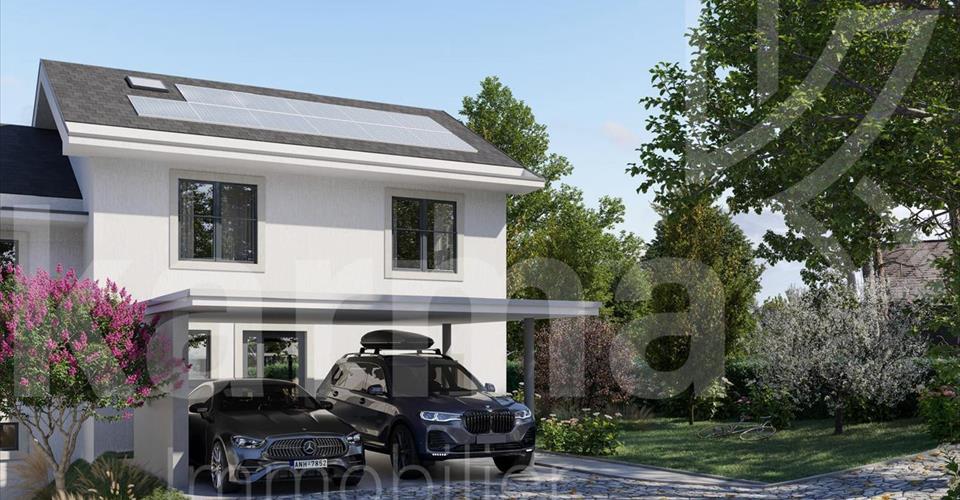 Conçu dans un esprit sobre et contemporain, ce nouveau projet de trois villas jumelées offre un confort de vie sans pareil. Réparties sur 2 niveaux + sous-sol, les villas ont été pensées avec soin et offrent une surface utile de 336 m2. Elles bénéficient de lumière naturelle grâce aux grandes baies vitrées s’ouvrant sur le jardin et sur la terrasse à l’étage. Implantées sur une belle parcelle, chaque villa dispose d’un jardin privatif et d”un couvert pour deux voitures. Piscine en option et en supplément. Les villas disposent au rez-de-chaussée, d’un hall d’entrée comprenant une armoire, d’un WC visiteurs, d’une magnifique pièce de vie baignée de lumière orientées côté terrasse et jardin et d’une cuisine ouverte. Le 1er étage est aménagé de deux chambres à coucher et d’une salle de bain ainsi qu’une suite parentale avec dressing et une salle de bain. Le sous-sol offre, une cave, une buanderie, un local technique, ainsi qu’une spacieuse salle de jeux. Comble de plus de 30 m2. Un couvert pour deux voitures complètent à merveille ce beau projet Bâtiments « MINERGIE P VILLA B: CHF 1’990’900.-