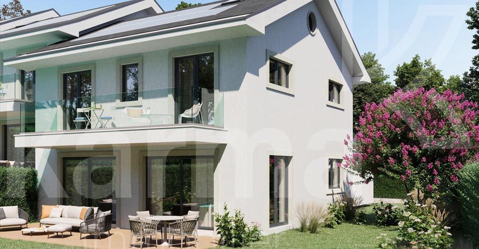 Conçu dans un esprit sobre et contemporain, ce nouveau projet de trois villas jumelées offre un confort de vie sans pareil. Réparties sur 2 niveaux + sous-sol, les villas ont été pensées avec soin et offrent une surface utile de 336 m2. Elles bénéficient de lumière naturelle grâce aux grandes baies vitrées s’ouvrant sur le jardin et sur la terrasse à l’étage. Implantées sur une belle parcelle, chaque villa dispose d’un jardin privatif et d”un couvert pour deux voitures. Piscine en option et en supplément. Les villas disposent au rez-de-chaussée, d’un hall d’entrée comprenant une armoire, d’un WC visiteurs, d’une magnifique pièce de vie baignée de lumière orientées côté terrasse et jardin et d’une cuisine ouverte. Le 1er étage est aménagé de deux chambres à coucher et d’une salle de bain ainsi qu’une suite parentale avec dressing et une salle de bain. Le sous-sol offre, une cave, une buanderie, un local technique, ainsi qu’une spacieuse salle de jeux. Comble de plus de 30 m2. Un couvert pour deux voitures complètent à merveille ce beau projet. Bâtiments « MINERGIE P VILLA C: CHF 2’340’000.-