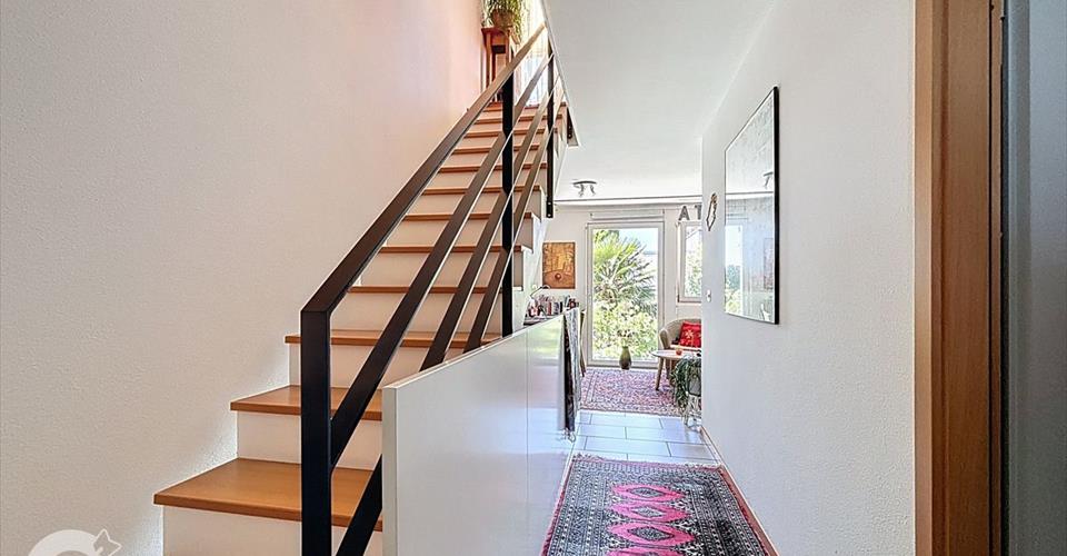 Entre Morges et Lausanne, proche de toutes les commodités (écoles, commerces, transports), cette maison contiguë de 4.5 pièces, bien agencée, saine et avec de très belles finitions dans toute la maison, offre un cadre de vie pratique et agréable. Entretenue avec soin par ses propriétaires, elle dispose d’équipements régulièrement modernisés, dont une chaudière à gaz neuve (2024), un carrelage effet bois et un électroménager récent. La maison se compose comme suit : Rez-de-chaussée : Cuisine ouverte et équipée Hall d’entrée avec armoires encastrées Séjour lumineux avec poêle à pierre ollaire Accès à un extérieur soigné avec terrasse, jardin, armoire de rangement, palmier et grand cyprès Étage : Deux chambres, dont une actuellement aménagée en atelier (facile de la refermer) Salle de douche avec colonne de lavage Dernier niveau : Suite parentale avec salle de bain (baignoire) Dressing attenant Balcon Informations complémentaires : Deux places de parc en sous-sol (côte à côte) incluses dans le prix affiché Grande cave