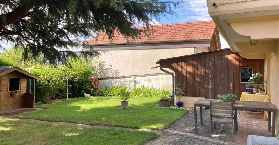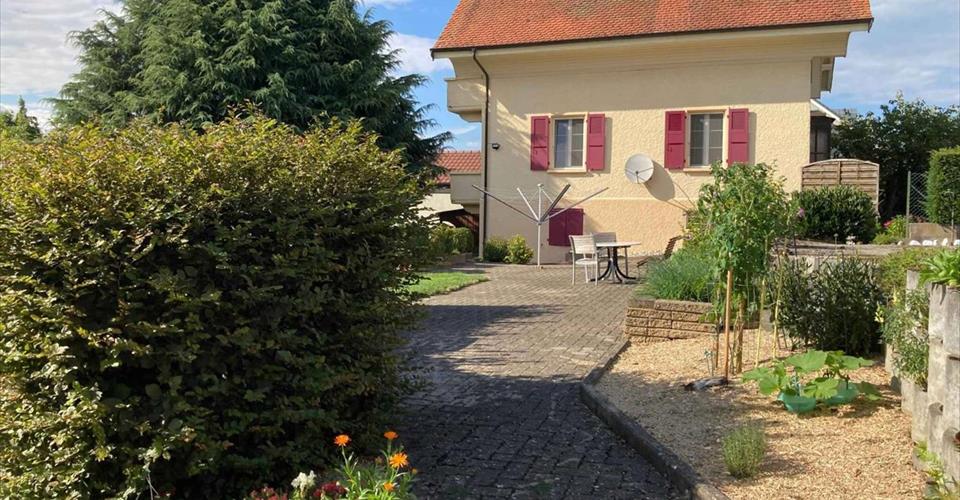 En exclusivité chez Bernard Nicod SA. Charmante maison de 4.5 pièces avec jardin et vue dégagée sur le Jura à seulement quelques minutes d’Yverdon-les-Bains. Située dans un cadre verdoyant et paisible sur une parcelle de 4400m2, cette maison individuelle de 4.5 pièces réparties sur 2 niveaux habitables offre un confort optimal pour une famille à la recherche de tranquillité. Elle se compose comme suit : Rez inférieur : Ce niveau comprend une buanderie/local technique, deux caves pratiques pour le rangement ainsi qu’un WC. Depuis ce niveau, vous bénéficiez d’un accès direct au jardin et à la terrasse, parfaits pour profiter des beaux jours en toute intimité. Rez-de-chaussée supérieur : Vous êtes accueilli par un sas d’entrée menant à un corridor qui dessert les différentes pièces de vie. Le séjour lumineux dispose d’un coin salle à manger agrémenté d’armoires murales. Le séjour ainsi que la cuisine entièrement agencée offrent un accès direct au premier balcon. Une salle de douches avec WC complète cet étage. 1er étage : L’espace nuit se compose de trois grandes chambres à coucher, dont une équipée d’armoires murales. Deux des chambres bénéficient d’un accès au second balcon, qui offre une vue dégagée sur le Jura. Depuis le premier étage, vous aurez accès au galetas offrant un potentiel de rangement supplémentaire. À l’extérieur, vous profitez d’une grande terrasse orientée sud-ouest, parfaite pour les repas en plein air ou les moments de détente. Le jardin entièrement arboré d’arbres fruitiers et d’ornements, crée un cadre naturel et accueillant. Deux cabanes de jardin vous permettront de stocker tout le nécessaire pour l’entretien des extérieurs. Attenante à la maison, une remise avec accès indépendant vous offre un espace de rangement polyvalent, idéal pour les outils, vélos ou autres équipements. Côté stationnement, la propriété dispose de deux garages box fermés, ainsi que de 4 à 5 places de parc extérieures, un véritable atout. INFORMATIONS ET VISITES : TANIA LEITE et ALEXANDRA JEREZ