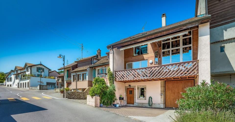 C’est dans le cadre authentique et préservé du charmant village de Gilly, entre vignes et nature, que se dévoile cette propriété à l’architecture rare. Niché sur les hauteurs de La Côte, ce lieu de vie bénéficie d’un environnement paisible, à quelques minutes seulement des grands axes reliant Genève, Lausanne et l’aéroport international. Ici, la douceur de vivre rencontre la praticité d’une localisation idéale. Loin des standards traditionnels, cette maison de village séduit par sa conception audacieuse et ses volumes en demi-niveaux, qui insufflent une vraie dynamique intérieure. Chaque espace a été pensé pour sublimer la lumière, avec de superbes hauteurs sous plafond, de grandes ouvertures en double hauteur et un agencement résolument ouvert. Les pièces de vie s’ouvrent sur une généreuse terrasse, offrant un prolongement naturel aux espaces communs. La circulation intérieure permet une belle fluidité entre lieux de partage et zones de calme, préservant ainsi l’intimité de chacun. Le bien dispose actuellement de trois chambres à coucher, avec la possibilité d’en aménager une à deux supplémentaires, ainsi que de deux salles de bain. Il offre également deux vastes pièces polyvalentes, idéales pour accueillir un bureau, un espace détente ou une salle de jeux. Enfin, quatre places de stationnement – deux en intérieur et deux à l’extérieur – complètent ce bien d’exception.