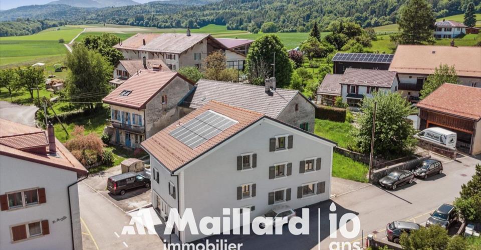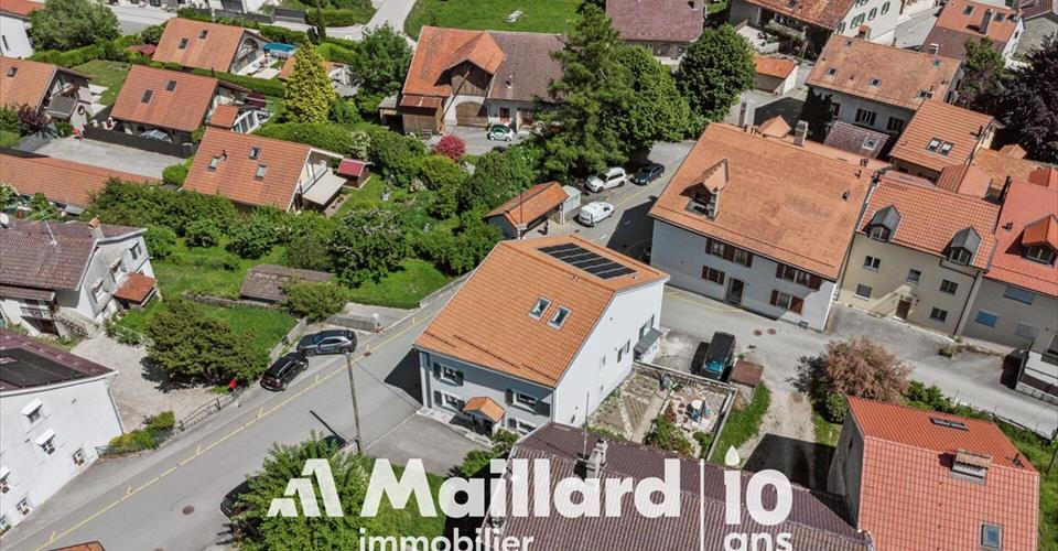 Nouveau chez Maillard Immobilier SA ! Dans un environnement calme, au coeur du Village de Marchissy, nous avons le plaisir de vous présenter cette charmante maison de village de 4,5 pièces, d’une surface de 228m2 et entièrement rénovée, à seulement 20 minutes de Nyon. La maison est composée de la manière suivante : Rez-de-chaussée : Entrée donnant accès directement au local technique Possibilité de faire un accès direct au garage/ ou pièce disponible 1er étage : Hall Spacieuse cuisine/ salle à manger et/ou salon Chambre pouvant faire office de salon (possibilité d’aménager les cloisons afin d’offrir un espace plus ouvert) WC visiteur 2ème étage : Grand dégagement (possibilité d’y encastré des armoires de rangement) 2 chambres à coucher dont une avec son dressing Salle de bain avec WC Combles : Grande pièce disponible de 37 m2 (idéale pour rangement ou dressing) La villa bénéficie de deux places de parking extérieures. Le garage ou pièces disponible pourrait être aménagé avec un espace extérieur afin de rendre un espace agréable d’extérieure, en supprimant une place de parking. De par sa rénovation complète et chauffée par pompe à chaleur, la maison dispose d’un excellent certificat énergétique (CECB) C/B/A. Points forts de la villa : Environnement villageois, paisible Position centrale dans le village Entièrement rénovée, aucuns travaux à prévoir Excellent certificat énergétique A seulement 15 minutes de Gland, 20 minutes de Nyon, 30 minutes de l’aéroport international de Genève et 45 minutes de Lausanne. Contact : Vincent Buccino Lieu Marchissy Marchissy est un village pittoresque situé au pied du Jura, dans le canton de Vaud, à une altitude de 810 mètres. Il fait partie du district de Nyon depuis le 1er janvier 2008. La commune couvre une superficie de 1’200 hectares, dont 635 hectares de forêts et 328 hectares de pâturages. Transports En bus, la ligne 830, opérée par CarPostal, relie Gland à St-George en passant par Marchissy. L’arrêt Marchissy, Village est desservi à des intervalles réguliers, notamment : 06:36, 07:36, 08:36, 09:36, 10:36, 11:36, 12:36, 13:36, 14:36, 15:36, 16:36, 17:36 Cette ligne offre une connexion directe avec la gare de Gland, facilitant l’accès aux trains CFF. Pour consulter les horaires détaillés, vous pouvez utiliser des plateformes telles que Bien que Marchissy ne dispose pas de gare ferroviaire propre, la ligne 830 assure une correspondance efficace avec la gare de Gland, d’où partent des trains réguliers vers des destinations telles que Lausanne, Genève et Nyon. Démographie et vie locale La population de Marchissy a plus que doublé en un quart de siècle, passant de 205 habitants en 1983 à plus de 416 habitants aujourd’hui. Une grande partie des résidents exerce une activité professionnelle hors du village, souvent sur l’arc lémanique, ce qui soulève des questions liées à la mobilité. Le village abrite plusieurs PME actives dans des domaines variés tels que la pose de sols, la scierie, la menuiserie, la charpente et l’hébergement de sites web. Les bâtiments communaux hébergent une auberge, une laiterie, une banque, une épicerie et un magasin proposant de l’artisanat et des fournitures pour l’artisanat. Ce dernier a repris l’agence postale du village lors de sa fermeture. La vie associative est dynamique, avec des sociétés locales telles que les Paysannes vaudoises, la jeunesse, le ski-club et le VTT club. Depuis peu, un troc-livres a été installé dans le bâtiment scolaire. Activités et loisirs Marchissy offre de nombreuses possibilités de loisirs en plein air. Le sentier du Coq mène les randonneurs du village, situé à 810 m d’altitude, au chalet de la Perroude à 1’425 m, en passant par le ” pavillon “, une halte offrant une vue panoramique sur l’ensemble du bassin lémanique. Le sentier des Douches serpente le long de la lisière de la forêt, offrant un panorama sur la chaîne des Alpes et le lac Léman. Pour les amateurs de VTT, des parcours balisés par le TCS sillonnent les 884 hectares de forêt de la commune. Le chalet de la Perroude, point culminant de la commune, est accessible en voiture l’été et abrite une buvette tenue par le Ski-club Informations pratiques Altitude : 810 m (village), 1’425 m (chalet de la Perroude) Superficie : 1’200 ha Population : Environ 416 habitants Accès : Route d’accès au col du Marchairuz
