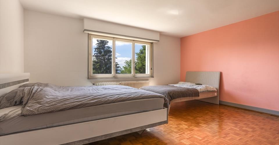 Cette maison individuelle de 4.5 pièces jouit d’une surface totale de ~176m2 et d’un volume de ~778m3. Orientée Sud-Ouest/Sud-Est, elle bénéficie d’une vue panoramique sur le lac et les montagnes et d’un ensoleillement optimal. Construite en 1968, elle est sise sur une vaste parcelle arborisée de ~2’106m2. Elle peut aujourd’hui être utilisée comme une maison individuelle de 4.5 pièces ou comme deux logements indépendants (appartement de 3.5 pièces et studio). Au rez-inférieur, l’habitation dispose d’une entrée distribuant les pièces de ce niveau. Il est composé d’une première grande chambre à coucher (~22m2) disposant d’un réduit et d’une cuisine. Une salle de bains/WC permet à cet espace d’être utilisé comme un studio indépendant (environ 40m2). Une seconde chambre à coucher (~19m2), un espace buanderie/chaufferie et une cave/abri PC complètent la distribution de ce niveau. À l’extérieur, une première terrasse et un jardin plat permettent de profiter du panorama exceptionnel. Le rez-supérieur comprend l’entrée principale de la maison et son hall avec armoires murales. Un vaste et lumineux séjour/salle à manger offre une luminosité éclatante et une vue panoramique sur le lac avec ses larges baies vitrées. Un balcon menant à une terrasse offre également des extérieurs de qualité à cet étage. Une cuisine, une salle de bains/WC et une troisième chambre à coucher (~18m2) avec vue sur le lac sont également à disposition des propriétaires. Les combles sont composés d’un vaste galetas sur toute la surface de la villa offrant de belles possibilités de rangement. Trois places de parc sont disponibles en contrebas de la propriété. Un escalier permet de rejoindre la villa et ses espaces extérieurs. Un cabanon de jardin sur le haut de la propriété (accessible depuis la route supérieure) offre un lieu d’agrément avec vue panoramique et du rangement supplémentaire. Vivre à Glion, c’est faire le choix d’habiter une magnifique région jouissant d’une vue unique sur le lac. C’est aussi bénéficier de la proximité avec la mythique ville de Montreux. Glion dispose de restaurants renommés, de plusieurs hautes écoles/instituts internationaux, d’une école publique et d’une épicerie. Les différents arrêts de train (Glion, Glion-Alpes, Glion-Collège) situés à environ 500m de la villa permettent de rejoindre Montreux (et ses écoles secondaires) en moins de 15 minutes, mais également Caux (~10 minutes), Jaman (~25 minutes) et les Rochers-de-Naye (~35 minutes). Ces lieux offrent de larges possibilités d’activités en été (randonnée, via ferrata, vélo…) comme en hiver (ski, raquettes, randonnée…). Le centre de Montreux et ses activités/commodités sont accessibles en ~5 minutes en voiture. Le funiculaire de Glion permet aussi de rejoindre Territet et ses quais en ~6 minutes. CONSTRUCTION + Type : Maçonnerie traditionnelle + Fenêtres : Bois et PVC double vitrage + Couverture : Tuiles terre-cuite + Isolation : Traditionnelle + Fermetures extérieures : Volets déroulants (manuels) + Chauffage : Gaz par radiateur DISTRIBUTION Rez-de-chaussée + Entrée secondaire + Cuisine + Chambre 1/pièce à vivre (~22m2) + Réduit/dressing + Salle de bains/WC + Chambre 2 + Local technique + Abri PC/cave + Terrasse + Jardin Étage 1 + Entrée principale + Hall avec armoires murales + Séjour/salle à manger avec balcon/terrasse + Balcon + Terrasse + Cuisine + Chambre n°3 avec petit balcon + Salle de bains/WC Combles + Galetas DIVERS + 3 places de parc extérieures INFORMATIONS COMPLÉMENTAIRES + Taux impôt foncier : 65.0 (très bas pour la région) + Coefficient impôt communal : 1.5‰ VISITE VIRTUELLE DISPONIBLE Visitez sans vous déplacer !
