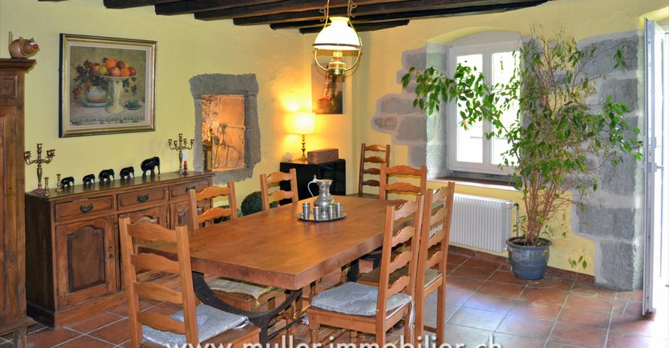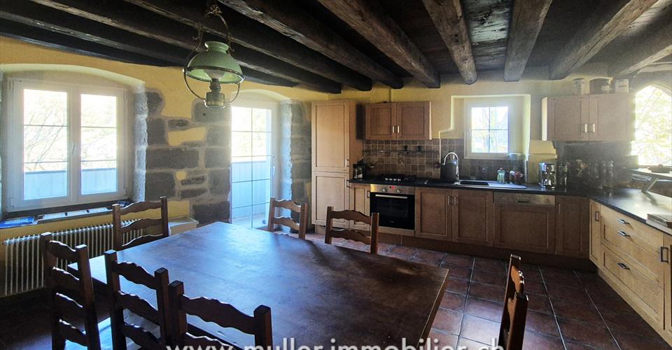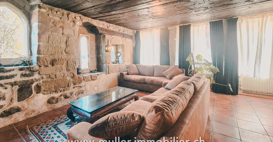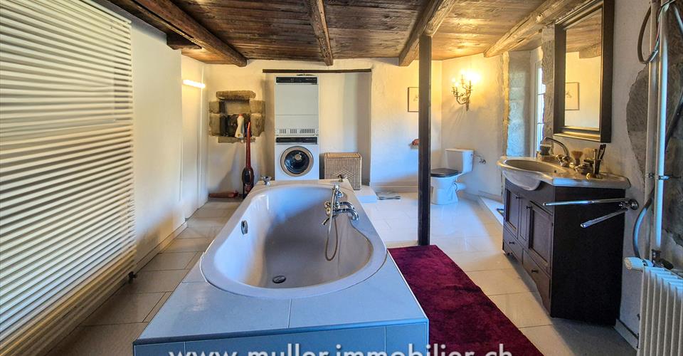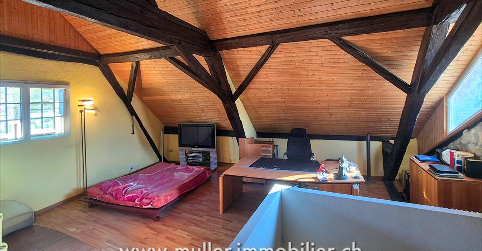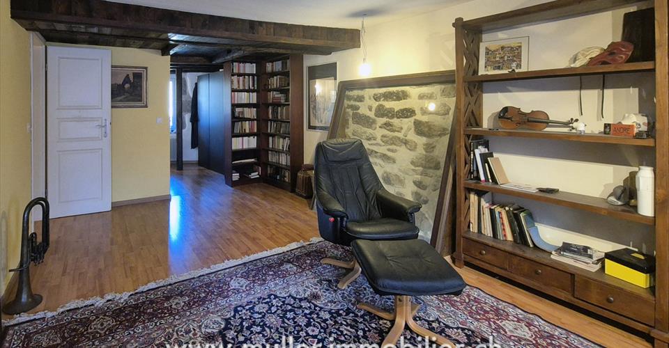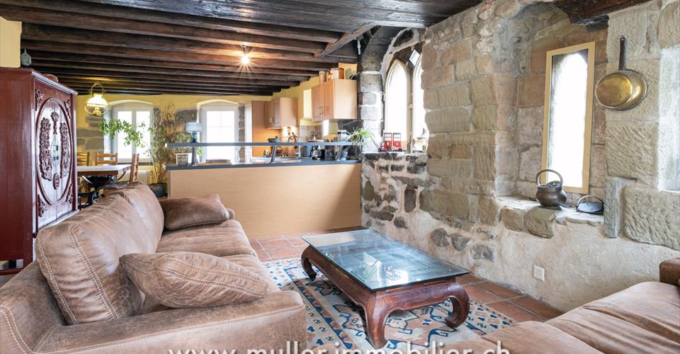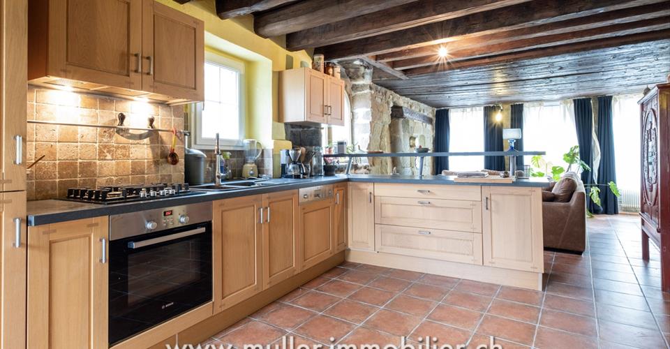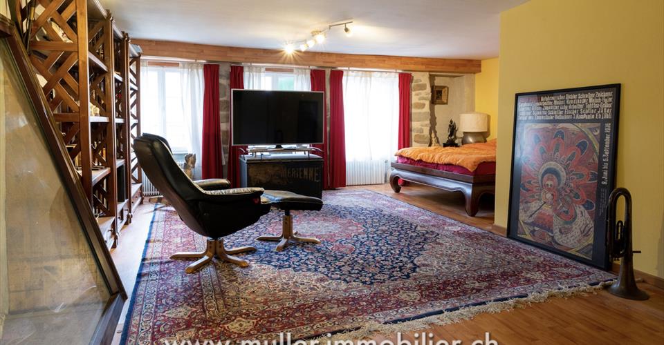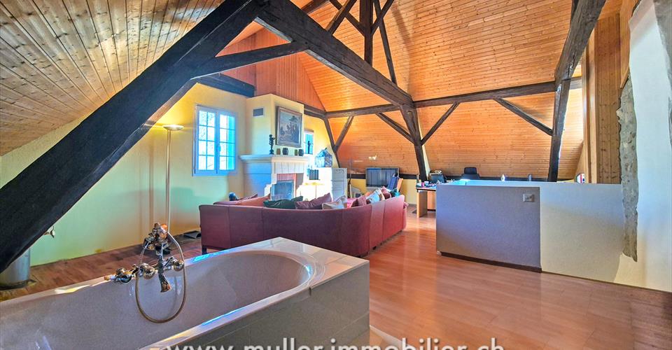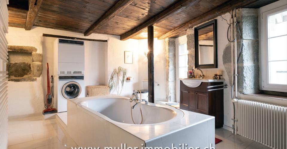 Superbe maison rénovée datant de 1650, au cœur du bourg de Moudon. Composée d’un logement principal de 3,5 pièces sous forme de loft sur 3 étages, et d’un loft indépendant de 70 m2 au rez inférieur. Avec une surface de 268 m2 et 3 balcons à l’arrière avec une vue plongeante sur la rivière. Idéalement situé dans le bourg, parfait pour une famille. À 3 min de la route de Berne. CONFORT Au cœur du bourg Bon ensoleillement Petit jardin à 40m, plein sud Traversant 3 balcons à l’arrière Cheminée dans les combles Pièces : 4,5 (3,5 + studio loft ) Surface habitable : 268 m2 Volume : pas d’info Construction : env. 1650 Chauffage au gaz, radiateurs Disponibilité : à convenir ACCÈS À 3 min de la route de Berne À 8 min de l’autoroute (Lausanne Vennes) À 25 min d’Yverdon Transports publics À 3 min à pied de l’arrêt de bus REZ INFÉRIEUR Loft de 70 m2 avec hall d’entrée, salle de douche WC, une grande pièce avec cuisine ouverte et accès au balcon. Accès à l’étage par des escaliers avec possibilité de fermer à clé. REZ SUPÉRIEUR Hall d’entrée, WC visiteurs, une grande pièce à vivre d’env. 80 m2 avec salon avec poutres apparentes, murs en vieilles pierres et fenêtres en ogive, salle à manger et cuisine ouverte entièrement équipée, accès au balcon. 1ER NIVEAU Grande chambre et bureau avec bibliothèque, salle de bain superbement rénovée, env. 80 m2. COMBLES Loft d’env. 67 m2 avec bureau, salon avec cheminée et salle de bain, grande hauteur sous toit et fenêtres sur 3 côtés. AMÉNAGEMENTS EXTÉRIEURS À 40 m env. un petit jardin de 141 m2. Entrée de la maison avec petit escalier en pierres. SITUATION Au cœur du bourg, proche du château, cette superbe maison est idéalement située à quelques minutes des transports publics, et à 3 min en voiture de la route de Berne. PARTICULARITÉS Construite dans les années 1650, cette maison historique a été superbement rénovée sur 4 niveaux entièrement ouverts, avec une mise en valeur des éléments d’époque, murs en vieilles pierres et poutres apparentes. REMARQUE Une visite s’impose pour découvrir cette belle maison remplie de charme.
