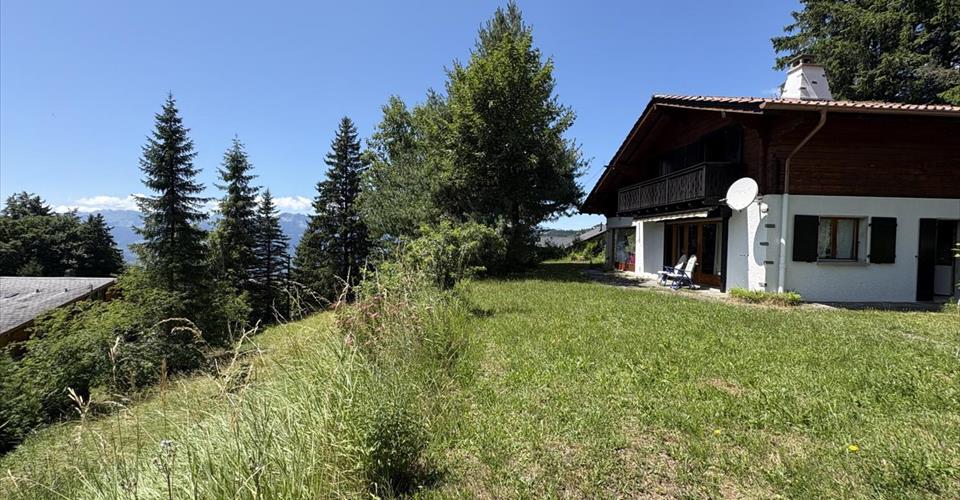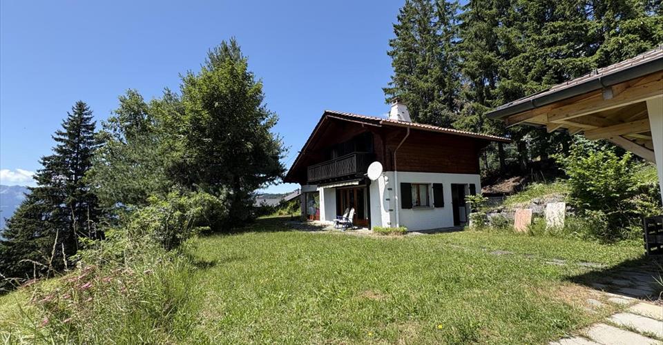 A Arveyes, entre Villars sur Ollon et La Barboleuse (Gryon), joli chalet d’une surface de 110 m2 environ dans un environnement bucolique sur une parcelle de terrain de 1600 m2 plein sud avec vue extraordinaire sur la Barboleuse, les montagnes environnantes et la vallée, sans vis-à-vis. Ce chalet est des années 70 et a eu quelques travaux dans les années 90.: Au rez de chaussée se trouvent : – hall d’entrée. – salle de bains avec WC, – séjour avec cheminée en pierre , accès direct sur la terrasse et le jardin, A l’étage e trouvent : – quatre chambres, – WC plus lave-main Ce chalet bénéficie d’un garage double en contre-haut , d’une dépendance habitable d’une vingtaine de m2 qui date de 2011 (possibilité d’en faire un studio ou autre), une buanderie, espaces de stockage, local technique. Ce charmant chalet mérite quelques travaux de rénovation . Il est idéal pour une résidence principale comme secondaire et pour les étrangers. Emplacement à proximité de l’arrêt de train Arveyes. – kitchenette équipée