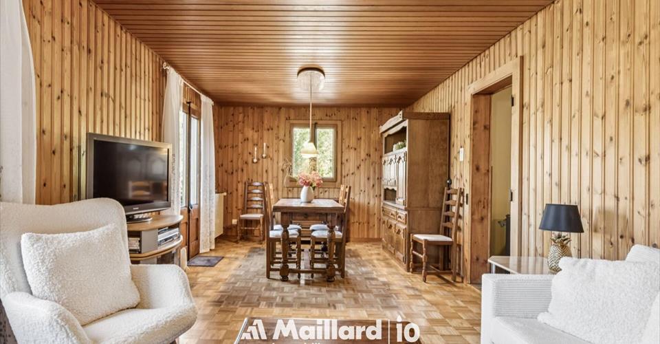 Jolie propriété de 4,5 pièces avec magnifique jardin Située sur une belle parcelle plane et verdoyante, cette charmante maison offre de beaux volumes, un cadre paisible et de multiples possibilités d’aménagement. À l’étage : Un séjour lumineux et convivial Deux chambres confortables Une cuisine fermée fonctionnelle Un espace bureau idéal pour le télétravail Une salle de bain Un WC séparé Au rez de jardin : Une chambre supplémentaire Une douche avec possibilité d’aménagement d’un WC Une buanderie Un espace de rangement Un local/garage offrant un fort potentiel de transformation en surface utile. Surface habitable d’environ 100 m2. Les extérieurs séduiront les amoureux de nature : Un jardin magnifiquement arboré et soigné Un potager Une source privée Un dépôt/atelier avec garage double, le tout d’une surface d’environ 100 m². Une remise au goût du jour de certains éléments sera toutefois à prévoir. Un bien rare qui saura combiner confort, charme et potentiel d’agrandissement.