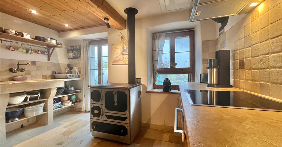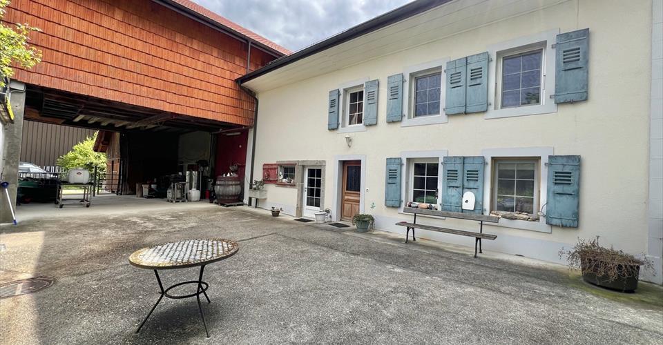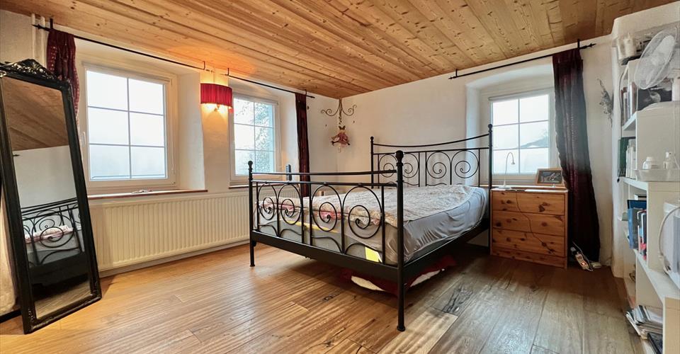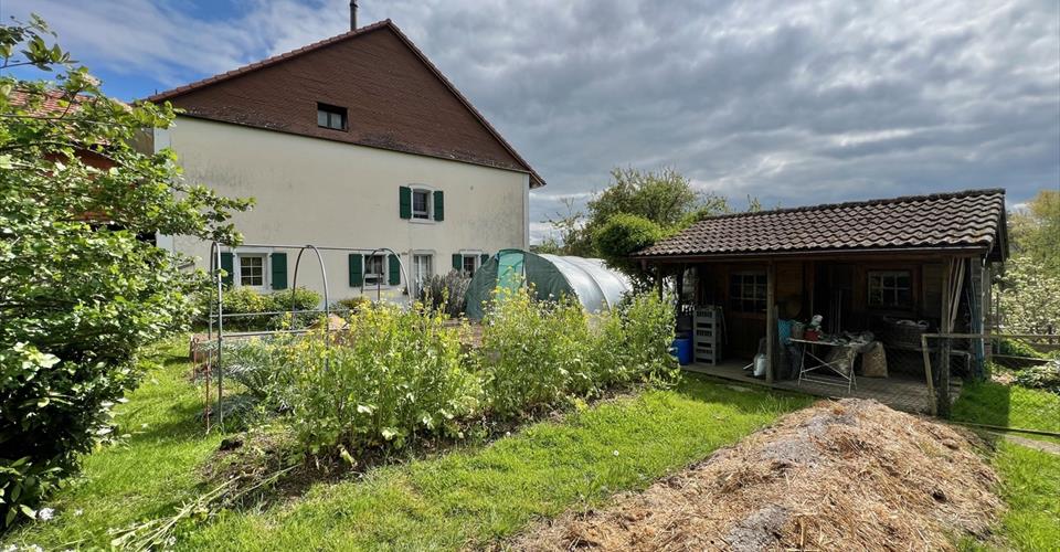 Située à Oppens, cette ferme sise sur un terrain en zone agricole de 2’207 m² sorti de la LDFR. Elle a été construite en 1884, puis rénovée en 2012 et 2014. Une grange et 4 hectares supplémentaires peuvent être vendues à un exploitant agricole.De plus 1,5 hectares attenant ont un bail à ferme longue durée De très lourds travaux, notamment d’assainissement, de réfection complète de toiture et de remaniement du terrain ont été entrepris rendant cette habitation chaleureuse et accueillante, tout en gardant le cachet de ces lieux chargés d’histoire. Distribution du logement: Sous-sol 1 cave voûtée en pierre Rez de chaussée Entrée Annexe 1 buanderie 1 wc 1 cuisine Entrée du logement 1 salon (poêle à bois) 1 cuisine (Vitroceram, four à pyrolyse, potager à bois) 1 chambre + 1 dressing 1 salle de douche (1 wc, 1 lavabo, 1 douche) Réduits sous escaliers (lave-vaisselle) 1er étage, actuellement organisé en chambres d’hôtes Hall d’entrée (armoires murales) 1 grande chambre + salle de douche (1 wc, 1 lavabo, 1 douche) 1 chambre + salle de douche (1 wc, 1 lavabo, 1 douche) Combles Galetas aménageable Distribution du rural: Rez inférieur : Four à pain Salle de fabrication du cidre actuellement, mais prévue pour être transformée en stabulation libre pour 3 chevaux avec eau + électricité, aire de sortie stabilisée Stabulation libre pour 2 chevaux + aire de sortie stabilisée 3ème et 4ème source 2 boxes pour poneys ou chevaux jusqu’à 1m45 Rez supérieur Stockage fourrage Pont de grange Avant pont : chambre froide, chaufferie 1 chambre pour le personnel Extérieurs du logement Grande cour bétonnée Terrasse Jardin avec alimentation en eau par les 2 sources Potager en permaculture + cabane isolée, 15 m² 2 sources d’eau dans la cour Fosse à lisier assainie Contactez-moi pour obtenir plus de renseignements sur ce joli domaine !!!