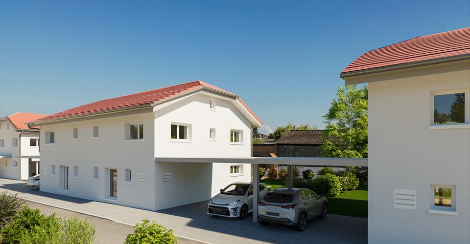 Les Villas Pré-du-Château 6 est une nouvelle promotion, au coeur de Payerne, en cours de construction: – une situation idéale: dans un quartier résidentiel et proche de toutes les commodités – 6 villas jumelées – 3 bâtiments de 2 villas – 4.5 pièces répartis sur 2 niveaux et un très grand galetas accesssible par escaliers – 3 belles chambres et 2 salle-de-bain avec la possibilité d’en créer une 3ème dans la suite parentale – 2 places de parc par villa – 1 pompe à chaleur et 5 panneaux solaires photovoltaïques par villa Villa A1 | 870’000.- – 106 m2 surface habitable – grand galetas avec fenêtre – 16 m2 de terrasse – 60 m2 de jardin à usage privatif (la parcelle est en copropriété pour le bâtiment A) – orientation Ouest – 1 place de parc couverte et 1 place de parc extérieure Villa A2 | 910’000.- – 106 m2 surface habitable – grand galetas avec fenêtre – 16 m2 de terrasse – 124 m2 de jardin à usage privatif (la parcelle est en copropriété pour le bâtiment A) – orientation Sud-Ouest – 1 place de parc couverte et 1 place de parc extérieure Le chantier a démarré! Livraison Printemps 2026. N’oubliez pas: économisez plus de Fr. 20’000.- sur les frais d’achat en achetant sur plans