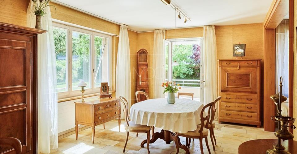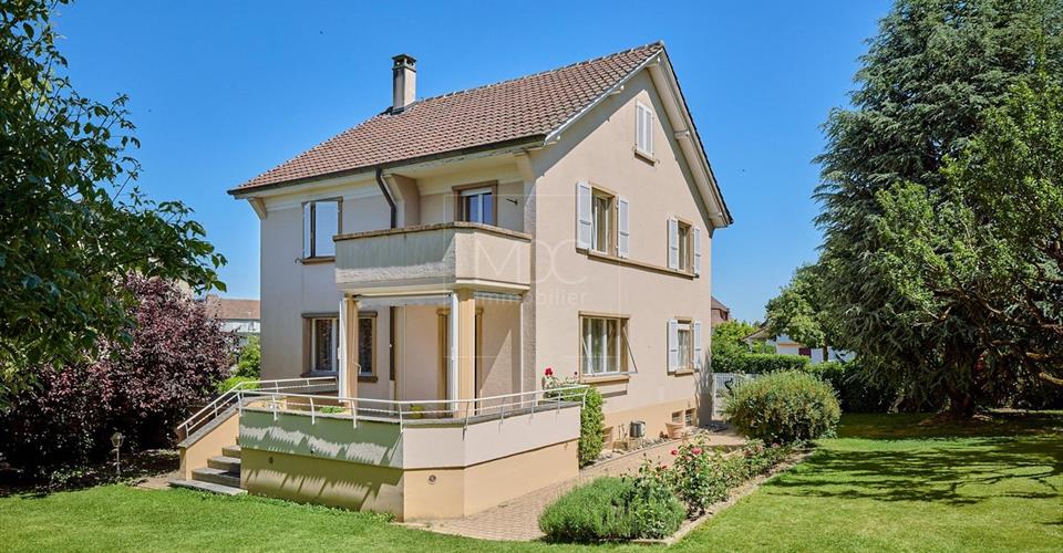 De 4,5 pièces orientée sud/ouest, 140 m2 habitables, sur une parcelle de 705 m2 cette jolie villa à rafraîchir offre une spacieuse pièce de vie avec cuisine ouverte, 3 chambres confortables ainsi qu’un beau jardin arboré. A 5 min. de l’autoroute Année de construction : 1940 Rénovations : 2024 boiler, 1991 chaudière, 1990 cuisine, sols et douche Surface habitable : 140 m2 Surface utile : 250 m2 Surface parcelle : 705 m2 Volume : 997 m3 Chauffage : mazout/radiateurs Nombre de pièces : 4.5 Nombre de chambres : 3 Salles de bains/douche : 1 Belle pièce de vie lumineuse avec cuisine ouverte Cheminée Adoucisseur Stores électriques au rez Galetas Terrasse semi-couverte Balcon Jardin plat Cabanon Robot Garage double en ligne (porte électrique) Place de parc Ecole primaire 5 min CO à 5 min Proche de toutes les commodités Disponibilité : à convenir ACCÈS A 5 min de l’autoroute A 5 min de la Route de Berne A 25 min d’Yverdon A 28 min de Fribourg COMMERCES Proche de toutes les commodités TRANSPORTS Gare à 3 min Bus à 3 min REZ Hall d’entrée, belle pièce de vie lumineuse avec salle à manger et cuisine ouverte, WC visiteurs ÉTAGE Trois chambres spacieuses et une salle de bains GALETAS Sauna avec douche et un galetas SOUS-SOL 2 disponibles dont un chauffé, carnotzet, cave, buanderie, local technique ainsi qu’un garage double en ligne avec porte électrique AMÉNAGEMENTS ÉXTERIEURS Terrasse semi couverte, balcon, cabanon ainsi qu’un beau jardin arboré Contact : Didier Michaux