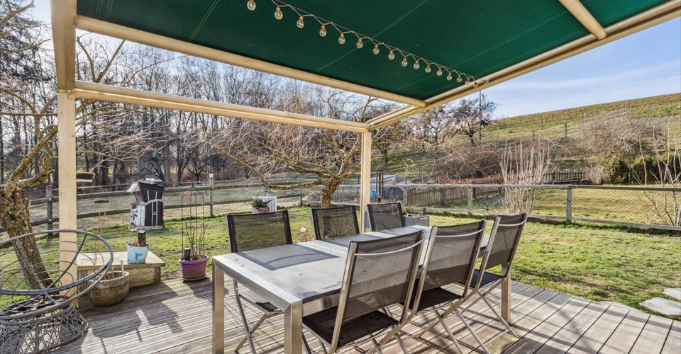 Située dans la paisible commune de Ropraz, cette maison individuelle offre un cadre de vie harmonieux alliant confort et modernité. Avec ses trois chambres, dont une suite parentale avec salle de bain privative comprenant douche et WC, elle garantit un confort optimal et une belle qualité de vie au quotidien. Au rez-de-chaussée, vous découvrirez une cuisine ouverte moderne, parfaitement intégrée à un grand séjour lumineux, idéal pour partager des moments conviviaux. Un toilette indépendant complète ce niveau pour plus de praticité. À l’étage, les trois chambres, baignées de lumière naturelle, sont accompagnées de deux salles de bains bien agencées, garantissant un confort maximal pour toute la famille. À l’extérieur, un jardin clôturé et sécurisé permet de profiter pleinement des beaux jours. Que ce soit pour un espace de détente, un coin de jeux pour les enfants ou encore l’aménagement d’un potager, cet extérieur offre de nombreuses possibilités. Une grande terrasse ensoleillée constitue un véritable atout, parfaite pour les repas en plein air. Elle est équipée d’un store rétractable automatique, permettant d’adapter l’ombre selon vos envies, et d’une petite fontaine apportant une touche apaisante à l’ensemble. Le chauffage aux pellets assure une solution économique et écologique, tout en offrant la possibilité d’installer des panneaux solaires grâce à un compteur déjà prévu à cet effet. Cette maison bénéficie d’un environnement calme et verdoyant, propice aux balades en pleine nature et à une vie sereine, en restant proche des principaux axes de transport. Avec des matériaux de qualité et une construction éco-performante, elle constitue une opportunité pour ceux qui recherchent une maison fonctionnelle et agréable à vivre. Ne manquez pas cette belle opportunité ! Contactez-nous dès aujourd’hui pour organiser une visite et découvrir tout son potentiel.