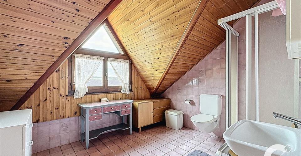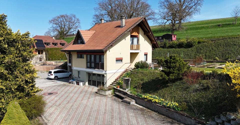 Cette maison est parfaite pour la vie de famille et totalement adaptée aux artisans et bricoleurs. De plus elle est déjà équipée d’un chauffage par pompe à chaleur. L’espace extérieur devant la maison permet de garer de nombreuses voitures ou camionnettes. Le rez inférieur est composé d’un grand garage pour deux voitures avec une grande porte vitrée. Cet espace peut très bien convenir à un atelier par exemple mais peut aussi être transformé en habitation ou bureaux. Un local buanderie y est attenant. Le rez supérieur dispose d’une cuisine et d’un séjour avec accès à la terrasse et aux jardins. Ce niveau comprend également une première chambre ou bureau. Le premier étage est composé de deux chambres, dont un grande chambre parentale avec dressing. Cette chambre peut très facilement être divisée en deux. La maison dispose d’extérieurs particulièrement pratiques et agréables avec une grande terrasse dallée, un jardin potager juste en face de la cuisine, une pelouse et plus haut une bande de terrain idéal pour quelques petits animaux tels que des poules. La maison est équipée d’un monte escalier tournant reliant les trois niveaux. La maison se compose comme suit : Au rez-supérieur 1 hall d’entrée 1 cuisine et salle à manger 1 séjour 1 chambre 1 salle de bain 1 réduit Au premier 1 grande chambre parentale avec dressing et balcon 1 chambre 1 salle de bains Combles Un galetas bien isolé accessible pour un escalier escamotable Au rez-inférieur 1 grand garage ou atelier 1 buanderie 1 cave 1 local technique et rangement Extérieurs 1 grande place dallée permettant de garer de nombreux véhicules 1 grande terrasse dallée 1 jardin avec pelouse et potager 2 abris de jardin Son orientation sud-ouest et son implantation en hauteur lui confèrent une vue dégagée sur la campagne environnante et le Jura. Nichée dans un environnement naturel préservé, à proximité de la source d’Henniez, elle bénéficie d’un cadre de vie d’exception où la nature est protégée. Situation : Seigneux, village de la commune de Valbroye dans la Broye vaudoise, est à proximité immédiate de : Granges-Près-Marnand (commerces, poste) : 3 km / 5 min Henniez : 1.5 km / 3 min Lucens : 8 km / 10 min Payerne : 10 km / 12 min Moudon : 12 km / 15 min Accès : Route de Berne : 1.5 km Gare CFF de Granges-Près-Marnand : 3 km Autoroute A1 via Payerne : 12 km Autoroute A1 via Moudon : 15 km Demandez moi le dossier en remplissant le formulaire de contact. Vous recevrez une réponse rapide.