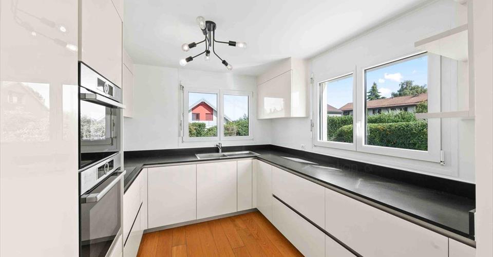 Découvrez cette charmante maison située au coeur de Founex, parfaitement positionnée à quelques minutes à pied de l’arrêt de bus et des écoles. Cette propriété fait partie d’une copropriété conviviale composée de 5 maisons, offrant un cadre de vie paisible et agréable. Description de la Maison : Rez-de-Chaussée: – Entrée accueillante donnant sur une vaste pièce de vie lumineuse avec de grandes fenêtres, armoire intégrée et poêle à bois – Cuisine ouverte, entièrement équipée 1er Étage: – Chambre parentale avec son propre balcon, armoires intégrées et salle de douche privative – Chambre spacieuse avec armoires intégrées – Deuxième chambre dotée d’un balcon – Salle de bains bien aménagée Combles: – Grande pièce lumineuse, idéale pour un bureau ou une salle de jeux Sous-Sol – Grande pièce de rangement chauffé avec armoires – Salle de douche – Buanderie non équipée Extérieurs et Annexe – Terrasse avec un joli jardinet, exposée Sud-Ouest, parfaite pour les barbecues et la détente en extérieur. – Jardinet du côté Est pour accueillir le soleil matinal. – Box fermé pour une voiture avec porte automatique (télécommande), plus un emplacement de parking extérieur. Conditions de Location Loyer : CHF 4’800.- + entretien des jardinets à la charge du locataire. Forfait mensuel de CHF 300.- incluant chauffage, eau chaude et froide. Parkings : CHF 200.- pour le box et la place extérieure. Montant total mensuel : CHF 5’300.- Cette belle maison est disponible de suite. Ne manquez pas cette opportunité unique de vivre dans un cadre idyllique à Founex. Contactez-nous pour organiser une visite ! Roberta Genini Managing Director www.agoodday.ch AGOODDAY relocation & real estate Sàrl Ch. de la Source 3b 1272 Genolier