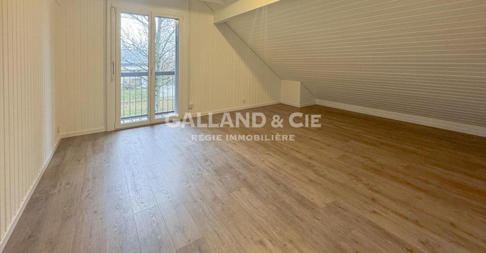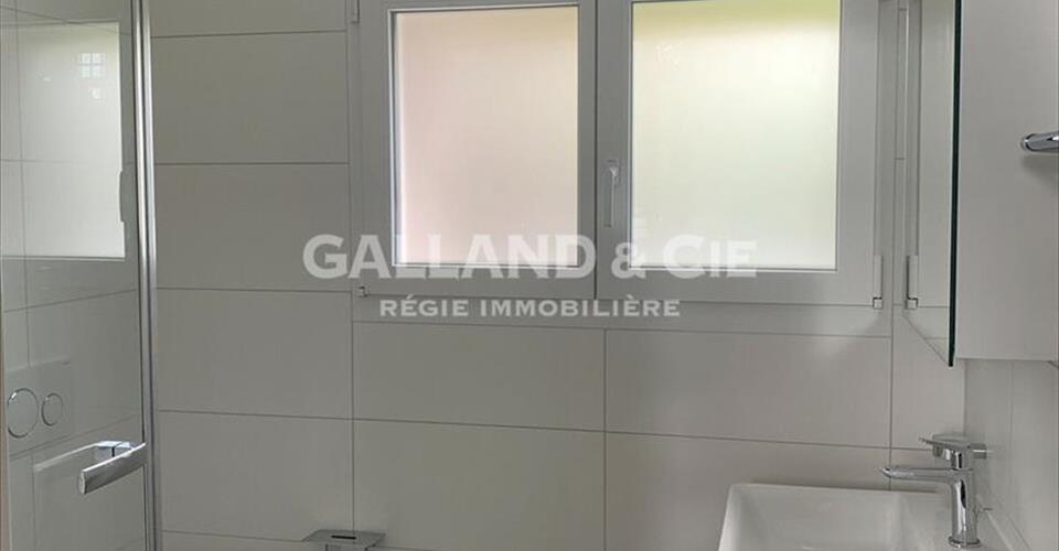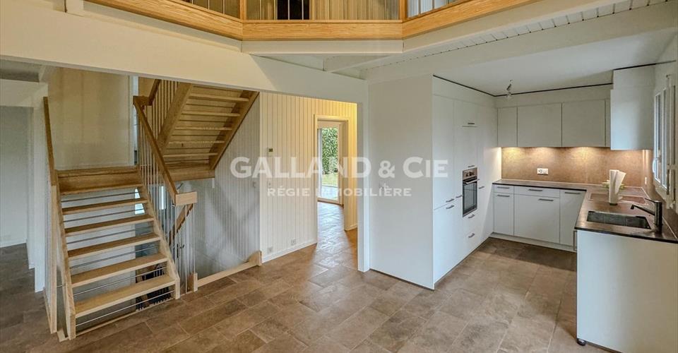 Situé dans un quartier calme du Mont-sur-Lausanne, cette belle villa vient d’être entièrement rénovée. Profitez de l’ensemble des rénovations effectuées en 2024 : – Isolation de l’enveloppe (murs et toiture) – Changement des fenêtres – Pose de panneaux photovoltaïques – Installation d’une pompe à chaleur (géothermie) – Installation du chauffage au sol – Pose d’une nouvelle cuisine – Réfection des peintures et des parquets – Pose d’un bel escalier en bois – Réfection de la salle de bain et de la salle de douche – Engazonnement du jardin Est (en cours) – … L’intérieur de cette maison comprend : – 3 chambres à coucher – Une cuisine moderne – Un spacieux séjour donnant sur le jardin – Un hall d’entrée comprenant des armoires de rangement – Une salle de douche – Une salle de bain – Une cave – Un atelier / salle de jeux au sous-sol – Une buanderie Profitez également d’un grand jardin de 900 m2 et d’une terrasse couverte. Un garage est accolé et 3 voitures peuvent se parquer devant la maison. Disponibilité : de suite – 1ère location après rénovation Renseignements & visite : Galland & Cie