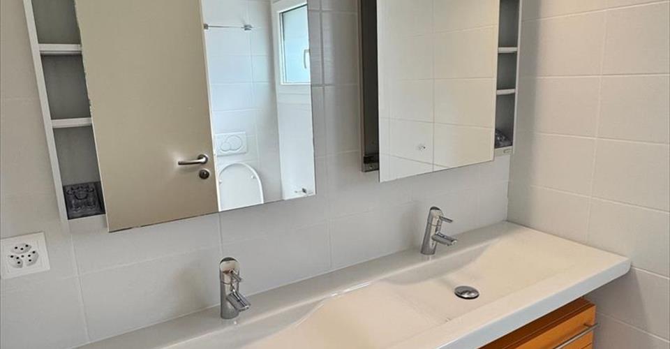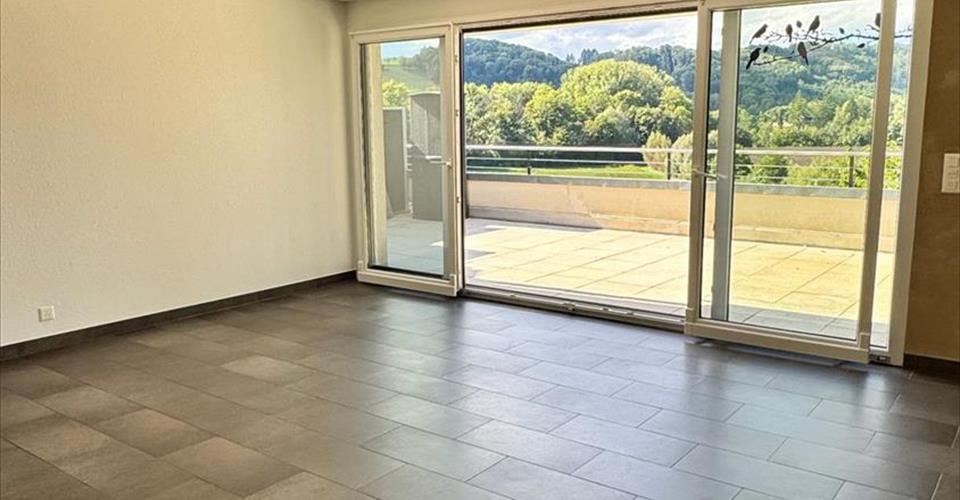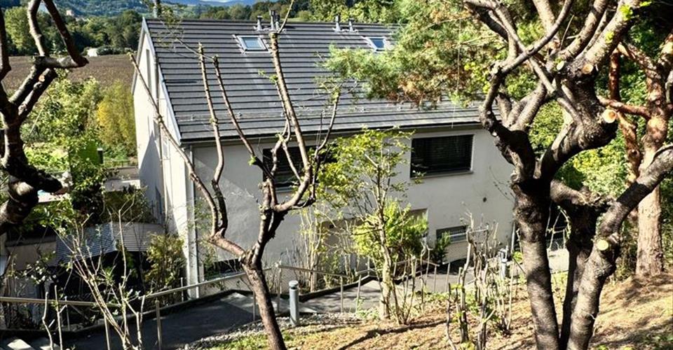 LS COURTAGE vous propose à la location à Penthaz: Bénéficiant d’une localisation privilégiée dans un ensemble immobilier de standing à quelques minutes de toutes les commodités, cette maison jumelée de 4.5 pièces d’environ 135 m2 habitables plus galetas et sous-sol profite de grandes ouvertures donnant un accès direct sur une grande terrasse de 32,70 m2 ensoleillé avec une vue dégagée sur la campagne. Cet objet propose des espaces de vie agréables ou les volumes se révèlent par de généreuses surfaces lumineuses. Fonctionnel et économique, ce bien propose une distribution astucieuse des espaces et de nombreux rangements à quelques minutes des commerces et des écoles. Il se compose comme suit : Rez supérieur Hall d’entrée de 6 m2 avec placards de rangement Grand séjour lumineux de 44,40 m2 avec cheminée et accès terrasse Cuisine ouverte entièrement équipée (four, plaque, lave-vaisselle, frigo, micro-ondes) WC séparé Etage Une suite parentale de 14,60 m2 avec dressing et salle de bain de 3,80 m2 Deux chambres pour enfants ou invités de 13,90 m2 et 14,40 m2 Salles de bain de 4 m2 Un réduit Galerie avec fenêtre de toit pour une salle de jeux ou une chambre complémentaire Sous-sol Disponible de 13,80 m2 Technique Une grande terrasse de 32.70 m2 et un abri jardin privé pouvant accueillir jusqu’à 4 vélos complètent l’équipement de ce bien à la location. Disponible immédiatement. Loyer : CHF 2’550-/mois Place de parc extérieure : CHF 100.-/mois Place de parc intérieure : CHF 150.-/mois Acompte : CHF 300 mois (Chauffage, eau…) Loyer Mensuel total : CHF 3’100.- Dans le cadre d’une pré-sélection, les personnes intéressées sont priées d’envoyer leur dossier complet à (Pièces d’identités, permis de séjour, trois dernières fiches de salaire, extrait de l’Office des poursuites, police d’assurance responsabilité civile). Des visites seront prévues pour le vendredi 10 octobre à partir de 14h30.