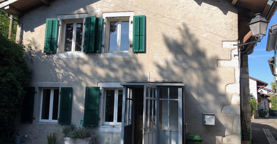 Au coeur du magnifique village vigneron de Dardagny, nous vous présentons cette joli maison de bourg. Avec beaucoup de caractère et de charme et située dans une impasse, elle saura vous séduire pour ses différentes caractéristiques. Disposition : MAISON REZ : Porche d’entrée belle cuisine ouverte sur le coin à manger Séjour avec poêle à bois WC visiteurs MAISON ETAGE : 1 grande chambre avec dressing 1 petite chambre avec mezzanine salle de bains avec baignoire et douche ANNEXE REZ : Buanderie Sauna Pompe à chaleur air/eau BUANDERIE ETAGE : Disponible avec douche et WC EXTERIEURS : 1 place de parc ext. 1 terrasse La maison est actuellement louée.