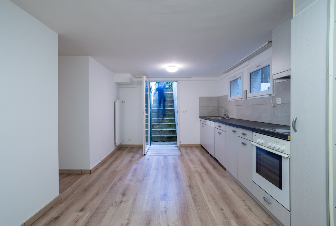 Rez-de-chaussée : hall d’entrée avec vestiaire, WC visiteurs, cuisine équipée ouverte sur le salon/salle à manger, avec un accès direct à la terrasse et au jardin. Deux chambres à coucher ainsi qu’une salle de bains/douche/WC.