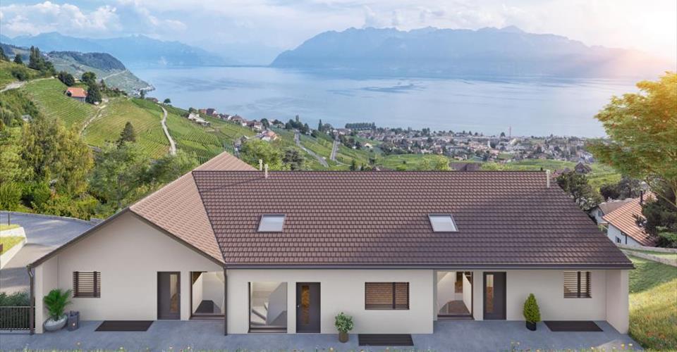 EN EXCLUSIVITÉ CHEZ PROXIMMO ! Parfaitement situé dans un quartier résidentiel hyper recherché, calme et réputé au coeur de la charmante commune de Grandvaux, ce nouveau projet de 3 villas de haut standing, vendues sur plans et résolument contemporaines, bénéficie d’un cadre de vie exceptionnel et rare pour la région, à proximité des commodités ainsi que de la gare CFF permettant de rejoindre le centre-ville de Lausanne facilement. Répondant à des critères de qualité, de sécurité et de confort des plus exigeants, cette superbe réalisation orientée plein sud offre tous les atouts recherchés par des futurs propriétaires soucieux de bénéficier d’un environnement privilégié et verdoyant au coeur du Lavaux. Surplombant les environs, ces villas jouissent d’une vue totale et plongeante sur le lac Léman, les Alpes et la région. Les maisons ont été parfaitement configurées et intelligemment réfléchies pour optimiser les espaces généreux mis en valeur par une luminosité naturelle constante tout au long de la journée. Les distributions intérieures sont fonctionnelles et généreuses offrant de vraies grandes pièces agréables à vivre au quotidien. Tous les lots disposent de jardins – terrasses offrant une vue panoramique sur le lac Léman et les Alpes. Les futurs propriétaires des lieux auront le choix des équipements, des matériaux et des finitions en profitant de budgets généreux. En annexe, chaque villa bénéficie d’une cave, de spacieux galetas et de deux places de parc en parking souterrain. Le quartier offre un cadre de vie privilégié pour la région, alliant vue panoramique sur le lac, calme et accès aux transports publics (gare CFF à 5-6 min. à pieds). Grandvaux est une commune prisée où il fait bon vivre disposant d’écoles (à 5 min.) se situant à proximité du lac et de Vevey et/ou Lausanne accessible en 15 minutes. CHANTIER EN COURS LIVRAISON FIN 2025 PRIX DE VENTE DÈS FRS. 2’090’000.– PROJET COUP DE COEUR, RARE À LA VENTE ! UNE VISITE S’IMPOSE RAPIDEMENT ! Notre avis : – Situation ultra-prisée au coeur d’une des plus belles région de Suisse – Vue plongeante et panoramique sur les Alpes et le lac Léman – Proximité aux commodités, écoles, bus, gare CFF, restaurants, commerces à 5-6 min. – Bord du lac à 10 min. – Lausanne et Vevey à 15 min. – Biens neufs, sous garantie et énergétiquement efficients – Finitions de haute qualité et excellentes distributions – Choix des aménagements et des finitions – Faibles coûts d’entretien – Excellent investissement, pérennité de la valeur et louable facilement C’est avec grand plaisir que nous organiserons une visite des lieux à votre convenance et que nous vous recevons sur rendez-vous pour vous présenter ce magnifique projet ! Dossier, informations et visite sur demande en nous envoyant vos coordonnées complètes par e-mail. Laurent Pannatier PROXIMMO Agence Immobilière Sàrl Place Bel-Air 1 CH – 1003 Lausanne www.proximmo.ch ——– Toutes nos offres et promotions sont visibles ici : https://www.proximmo.ch/acheter/ ——– Vous envisagez de mettre en vente votre bien immobilier ? Contactez-nous sans engagement pour une estimation gratuite de votre objet. www.proximmo.ch