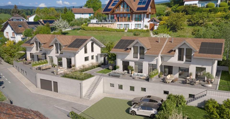 EN EXCLUSIVITÉ CHEZ PROXIMMO, VOTRE AGENCE IMMOBILIÈRE : VILLAS NEUVES DANS UN CADRE CALME ET PROCHE DE TOUT Idéalement situé au coeur de Montherod, sur la commune d’Aubonne, ce nouveau projet immobilier de quatre villas mitoyennes vendues sur plans allie charme et confort dans un cadre paisible, à quelques minutes de toutes les commodités présentes en ville. Répondant à des critères de qualité, de sécurité et de confort des plus exigeants, cette belle réalisation offre tous les atouts recherchés par des familles soucieuses de bénéficier d’un environnement de vie serein, tout en profitant des avantages de la proximité aux centres urbains. Les villas ont été parfaitement configurées et soigneusement pensées pour optimiser les espaces généreux mis en valeur par une luminosité naturelle constante tout au long de la journée grâce à de belles ouvertures et à une exposition plein Sud. Chaque maison dispose d’une belle terrasse avec jardin privatif pour profiter des beaux jours et du calme des environs. Les futurs propriétaires des lieux pourront modifier la distribution et auront le choix des équipements, des matériaux et des finitions, permettant de créer un espace reflétant parfaitement leurs préférences et leur style de vie. L’emplacement propose un lieu de vie exceptionnel pour la région, protégé des nuisances. Une ligne de Car Postal se trouve à env. 100m et permet de rejoindre facilement la ville et la gare d’Allaman en 15 min. Le centre d’Aubonne se situe à env. 3 min en voiture, où l’on trouve toutes les commodités urbaines. Il faut env. 10 min pour rejoindre l’autoroute et la zone industrielle d’Etoy, env. 12 min pour se rendre à Morges, 20 min pour Lausanne et 30 min pour Genève. PERMIS EN FORCE ! Livraison prévue pour fin 2026. Notre avis : – Situation prisée au calme et proche de la ville – Proximité aux TP et facilité d’accès à Aubonne – Biens neufs, sous garantie et énergétiquement efficients – Finitions de qualité et excellentes distributions – Choix des aménagements et des finitions – Faibles coûts d’entretien – Excellent investissement, pérennité de la valeur – Prix de vente attractifs pour la région Prix dès Frs 1’320’000.- (places de parc intérieures en sus, CHF 30’000.-/unité) C’est avec grand plaisir que nous organiserons une visite des lieux à votre convenance et que nous vous recevons sur rendez-vous pour vous présenter ce magnifique projet ! ——– Dossier, informations et visite sur demande en nous envoyant vos coordonnées complètes par e-mail. Sébastien Pannatier et Laurent Pannatier PROXIMMO Sàrl Agence immobilière www.proximmo.ch ——– Toutes nos offres et promotions sont visibles ici : https://proximmo.ch/proximmo-vente-immobilier.html ——– Vous envisagez de mettre en vente votre bien immobilier ? Contactez-nous sans engagement pour une estimation gratuite de votre objet. www.proximmo.ch