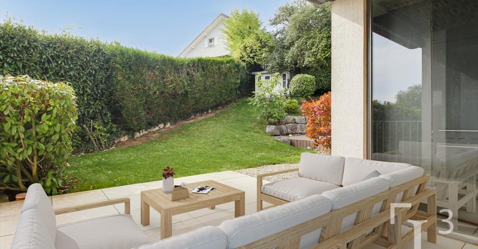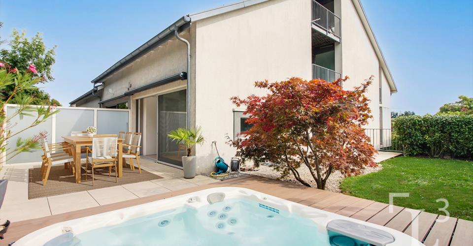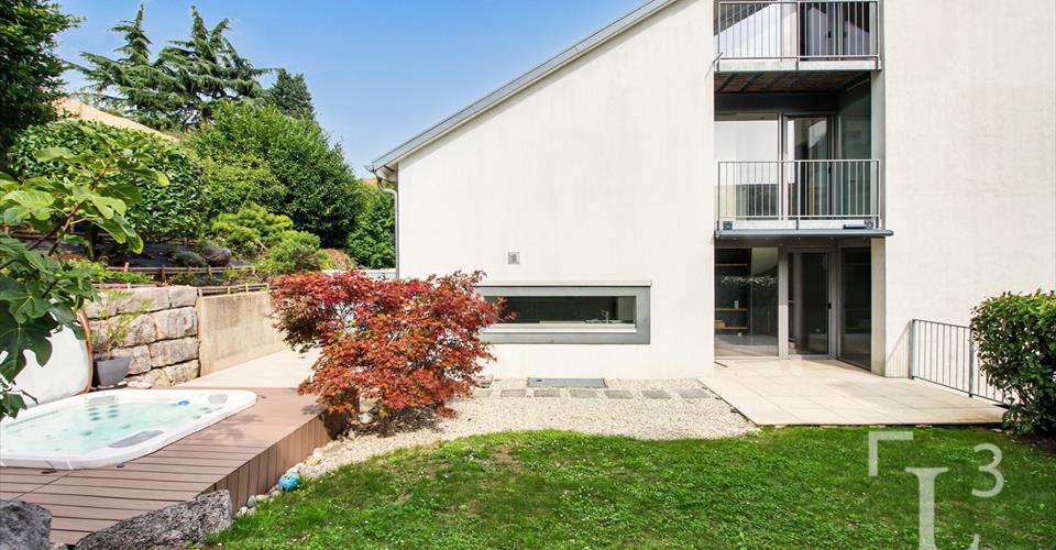 By L3 Properties +++ Spacieuse et moderne +++ Extérieurs agréables +++ Idéal pour une famille Située au centre de Montherod (commune d’Aubonne), dans une petite PPE, cette maison en pignon de 5.5 pièces se situe à proximité des transports et des commodités : auberge communale, crèche et arrêt de bus. Le centre-ville d’Aubonne est à 4 min en voiture. Le jardin privatif et clôturé d’env. 240 m2 est exposé Sud et Ouest. Les extérieurs sont aménagés entre la terrasse dallée, le jardin arboré et la terrasse en bois avec un jacuzzi. Depuis le séjour et depuis les chambres à l’étage, deux balcons exposés Sud offrent une belle vue sur les Alpes. Avec son accès indépendant, la maison est construite sur 4 niveaux avec des matériaux de bonnes qualités. Rénovée en 2019, elle est spacieuse et lumineuse. Surface utile : env. 230 m2 Surface habitable : env. 170 m2 Surfaces balcons Sud : env. 12.5 m2 (x2) Surface jardin Ouest : env. 240 m2 Nombre de chambres : 4 Nombre de salles de bain : 3 Rez inférieur : – Garage (une place) avec direct à la maison – Buanderie, cave, une pièce disponible (chauffée) de 22 m2 selon les besoins (chambre d’amis/home cinema/fitness) Deux places de parc extérieures complètent cette maison (prix en sus) L3 Properties Visites & infos www.L3-properties.ch