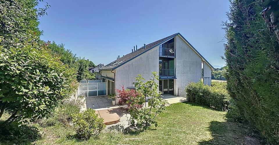 Située dans le charmant de village de Montherod, sur la commune d’Aubonne, cette maison mitoyenne en pignon est disponible immédiatement. Répartie sur plusieurs niveaux et largement ouverte sur l’extérieur, elle offre une luminosité exceptionnelle grâce à son orientation plein ouest et profite d’un ensoleillement optimal. Implantée au sein d’une petite PPE de 4 lots, elle séduit par son ambiance chaleureuse et ses finitions de qualité. Construite en 2009, elle est en excellent état et ne nécessite aucun travaux. Le rez-supérieur offre une vaste pièce de vie lumineuse avec accès direct à l’extérieur via un balcon et deux terrasses menant au jardin privatif et arboré, agrémenté d’un jacuzzi. Le premier étage est dédié aux enfants avec 3 chambres et 2 salles d’eau alors que la chambre parentale et sa salle d’eau occupent les combles. Le rez-inférieur dispose d’une entrée privative, un garage avec accès direct au hall d’entrée, un toilette invités et une buanderie avec de grand espace de rangements. Cette maison moderne et fonctionnelle conviendra parfaitement à une famille en quête d’espace, de calme et de qualité de vie, à seulement quelques minutes des commodités d’Aubonne.