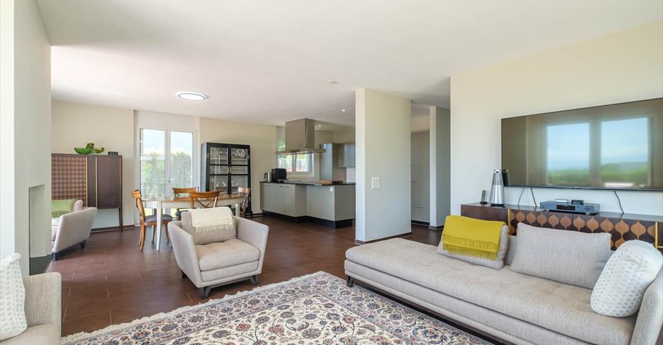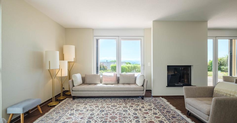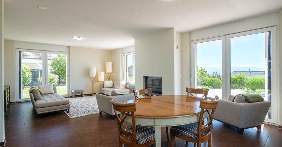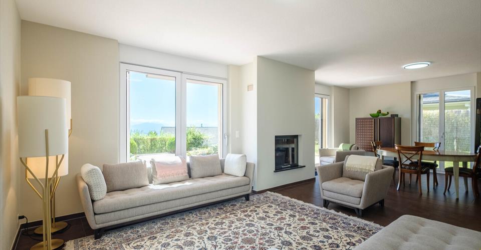 Cette charmante villa familiale se trouve dans un quartier résidentiel au calme, et au fond d’une impasse, au nord de la commune de Bassins dans le coeur de la Terre Sainte. Elle offre une superbe vue sur le lac et est idéalement située à proximité de l’agglomération de Gland, des axes autoroutiers et de Genève. Edifiée en 2011 et entièrement rénovée en 2017, cette propriété se caractérise par sa vue sur le lac, ses pièces lumineuses, et de beaux volumes. Elle offre une surface utile de 208 m2 organisée sur 3 niveaux et reçoit une entrée, un beau salon séjour avec cheminée, une cuisine ouverte aménagée équipée, 4 chambres dont une suite parentale, une salle d’eau, une salle de bains et toilettes. La parcelle de 1045 m² est idéalement exposée plein sud et bénéficie d’une magnifique vue sur le lac et des alpes. Les extérieurs se composent d’un jardin arboré et d’une superbe terrasse pour profiter de l’extérieur. Un carport pour 2 voitures, 4 places extérieures et un sous sol entièrement aménagé avec une salle de fitness et sauna, une salle de jeux, une salle d’eau, et un local technique complètent cette villa. Une propriété parfaitement adaptée à une clientèle à la recherche de calme et d’une maison adaptée à la vie familiale.