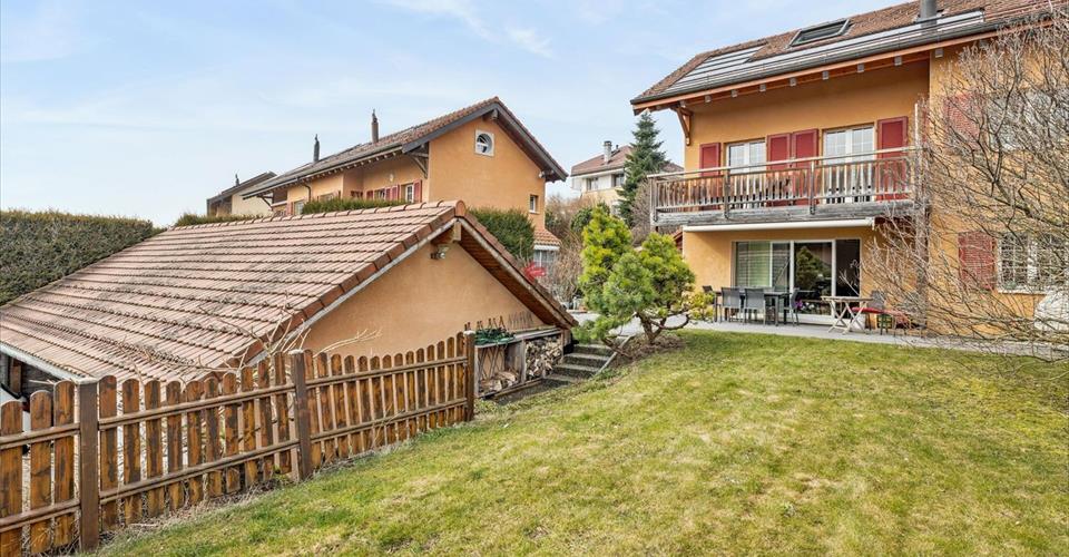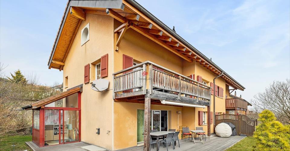 Une vie simple et heureuse à Bassins: villa jumelle de 5.5 pièces Tout en cultivant une vie à la campagne et proche des grands centres urbains, les heureux résidents village de Bassins, qui se situe juste au-dessus des stratus bénéficient d’une qualité de vie sans pareille: des lieux agrestes et boisés, des perspectives riantes, l’harmonie entre la nature et l’activité humaine, la présence d’un passé proche et plus ancien, des chevreuils et des chamois à surprendre, des oiseaux à voir et à entendre, des fleurs dans les champs et dans les bois, des feuilles dorées en automne et vert tendre au printemps, une eau de source, ici la nature est préservée à 30 minutes de Genève. Dans le coeur du village, au sein d’une rue résidentielle calme, est édifiée cette spacieuse villa jumelle en pignon sur une parcelle de 400 m². Construite sur un devers selon les règles de l’art, cette villa repose sur trois niveaux d’habitation plus un sous-sol et se réparti comme suit: Rez-de-chaussée: -Sas d’entrée -Vestiaire -WC visiteurs -Vaste salon-séjour très lumineux équipé d’un poêle -Cuisine semi-ouverte entièrement équipée -Terrasse extérieure et jardin Etage -1 salle de douche -1 salle de bains -3 chambres dont 1 avec balcon Combles aménagés -Salle de jeux -Bureau -Vaste surface disponible -Sous-sol -Local technique -Buanderie -Cave -Local disponible Un garage-box de 132 m³ avec ouverture automatique et une place extérieure enrichissent le bien. Le bien idéal pour une famille se trouve ici.