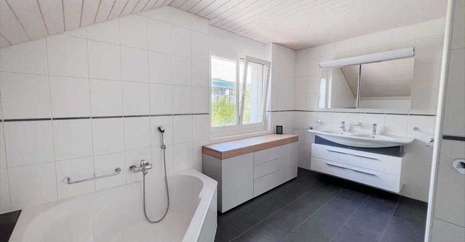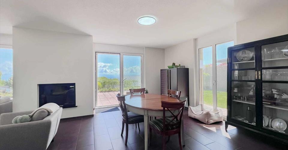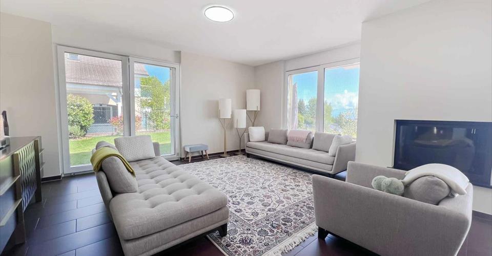 Située dans un quartier résidentiel de la commune de Bassins, district de Nyon, cette magnifique villa offre tout le confort et la modernité attendue par une famille. Orientée plein sud, luminosité, ensoleillement optimal et superbe vue sur les Alpes et le lac, de Morges au jet d’eau de Genève. La maison est très bien équipée au standard Minérgie, construction et matériaux de grande qualité permettant une faible consommation énergétique. La maison reliée au chauffage à distance par le sol et est pré-équipée pour la pose de panneaux solaires. Technologiquement, elle est équipée en prise RG45, TNT, système informatique/domotique, installation satellite Belles pièces et beau volume avec une hauteur de 2.6m, deux belles terrasses orientée sud – sud/ouest. Parquet haut de gamme dans les chambres. Rez-de-chaussée Vaste hall d’entrée avec vestiaire, desservant un WC/douche visiteurs et une première chambre. Une superbe cuisine ouverte de grande qualité entièrement équipée avec de l’électro-ménager haut de gamme (teppanyaki, friteuse etc…) ouvrant sur un grand séjour/salle à manger avec cheminée, équipé de grandes baies vitrées donnant accès aux terrasses et jardin. Etage Trois belles chambres dont une suite parentale avec balcon (vue imprenable) dressing et salle de douche, une très grande salle de bains avec baignoire et douche et une buanderie complètent ce niveau. Sous-sol Entièrement chauffé(excepté cave) hauteur de 2.50m. composé d’une grande pièce pouvant servir de salle de sport ou home cinéma ou chambre d’appoint, une salle de douche, un sauna, une cave à vin, une buanderie et le local technique. La toiture a bénéficié d’une rénovation complète de l’isolation et de la couverture en 2023, offrant un confort thermique optimal. toutes les fenêtres sont équipées de moustiquaires et les Velux sont équipés d’ouverture et stores électriques.