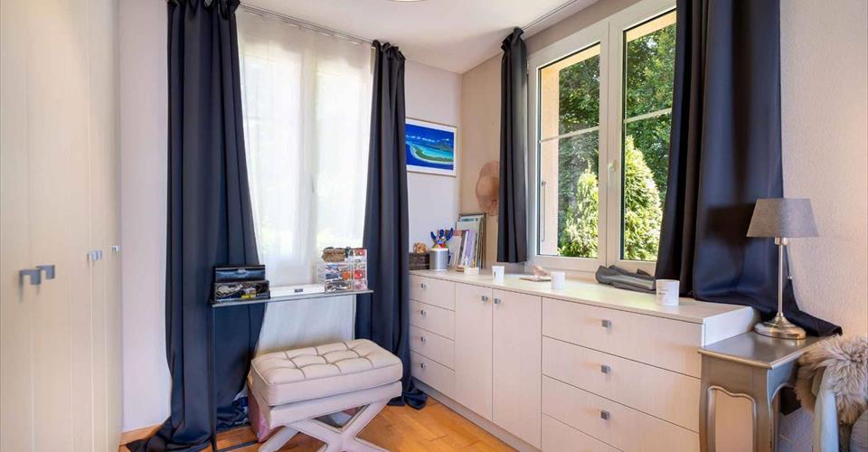 Située dans un quartier résidentiel prisé de Belmont-sur-Lausanne, cette charmante villa contiguë en position d’extrémité droite bénéficie d’un emplacement privilégié, proche des commodités, dans un environnement paisible et verdoyant. Son orientation sud-est et sa position en hauteur lui assurent un cadre de vie lumineux et agréable. La propriété offre une magnifique vue dégagée sur le lac Léman et bénéficie d’un ensoleillement optimal. Érigée sur une parcelle de 1’162 m², comprenant 3 villas, cette propriété séduit par son architecture classique, son élégance discrète et son cadre soigneusement entretenu. Rénovée avec soin en 2016, la villa se présente en bon état, prête à accueillir une famille. D’une surface habitable d’environ 130 m² répartie sur trois niveaux, complétés par un sous-sol entièrement aménagé, elle propose des espaces de vie confortables et bien pensés, parfaitement adaptés aux besoins d’une famille. Deux places de parc couvertes ainsi qu’une place extérieure viennent compléter ce bien. N’hésitez pas à nous contacter pour une visite.