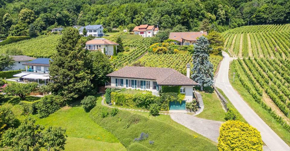 Cette villa permet à ses occupants de fuir du stress du quotidien des villes mouvementés et de retrouver un refuge avec un environnement au calme total, bénéficiant d’un panorama d’exception! Charmante villa individuelle d’environ 245 m2 utiles, érigée sur une parcelle de plus de 1’300 m2, située dans un cadre exceptionnel bordée de vignes et bénéficiant d’une vue époustouflante. Le rez supérieur offre une distribution de plain-pied avec une spacieuse entrée, un WC visiteurs, salon/ salle à manger lumineuse avec la cuisine en prolongement. La partie nuit est composée de 3 chambres à coucher (dont une parentale avec sa salle d’eau ouverte ensuite), une grande salle-de-douche avec double lavabo et WC. Toutes les pièces ont accès à l’extérieur avec une partie balcon face aux chambres et une grande terrasse en prolongement. Le rez-inférieur, quant à lui, est aménagée avec un spacieux studio composé d’une salle-d ‘eau, une kitchenette et un espace salon/ chambre. Il possède une entrée indépendante mais aussi accessible par l’habitation principale. Ce niveau est complété par une cave, une pièce aménageable avec buanderie et avec accès au garage double. Une cour dallée permet le parcage de plusieurs véhicules. L’habitation a été continuellement entretenue. Toutefois, des travaux de rafraîchissement sont à prévoir. Votre contact pour toutes informations ou visite : Peter Oscarsson