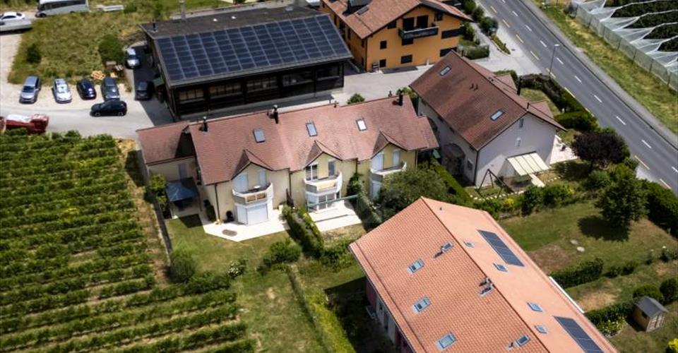 – Quartier calme – Lumineux – Combles à aménager – Cachet En exclusivité auprès de la Société Privée de Gérance, Située au cœur du pittoresque village de Bursins, dans un environnement paisible et verdoyant à proximité immédiate des vignes, cette charmante maison contiguë séduit par ses beaux volumes, sa luminosité naturelle et son agencement pensé pour offrir un cadre de vie familial à la fois confortable et harmonieux. La maison s’organise sur plusieurs niveaux et propose au rez-de-chaussée un spacieux séjour lumineux de 44 m², agrémenté d’un poêle pour une ambiance chaleureuse, une cuisine fermée de 8.49 m², un hall d’entrée accueillant, ainsi qu’une salle de douche. À l’étage, vous découvrirez trois chambres, dont une suite parentale de 17 m² avec salle d’eau attenante et balcon privatif de 6.5 m² offrant une agréable vue dégagée sur les vignes. Le dernier étage de 35 m² constitue un véritable espace à valoriser : il peut être aménagé selon vos envies en grande pièce familiale, salle de jeux, bureau, ou encore divisé en deux chambres supplémentaires. Au sous-sol, une salle de jeux de 20 m² complète parfaitement les espaces de vie, idéale pour les enfants ou comme espace détente. À l’extérieur, vous profiterez d’un jardin avec terrasse de 70 m² agrémentée d’une pergola extensible, parfait pour les moments en plein air. Deux places de parc extérieures ainsi qu’un emplacement pour moto complètent ce bien.