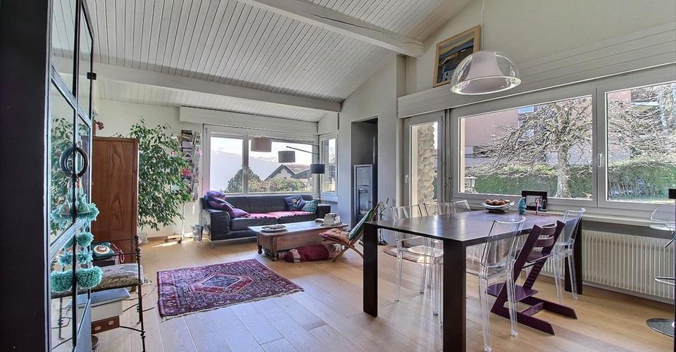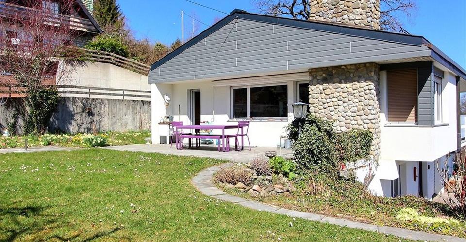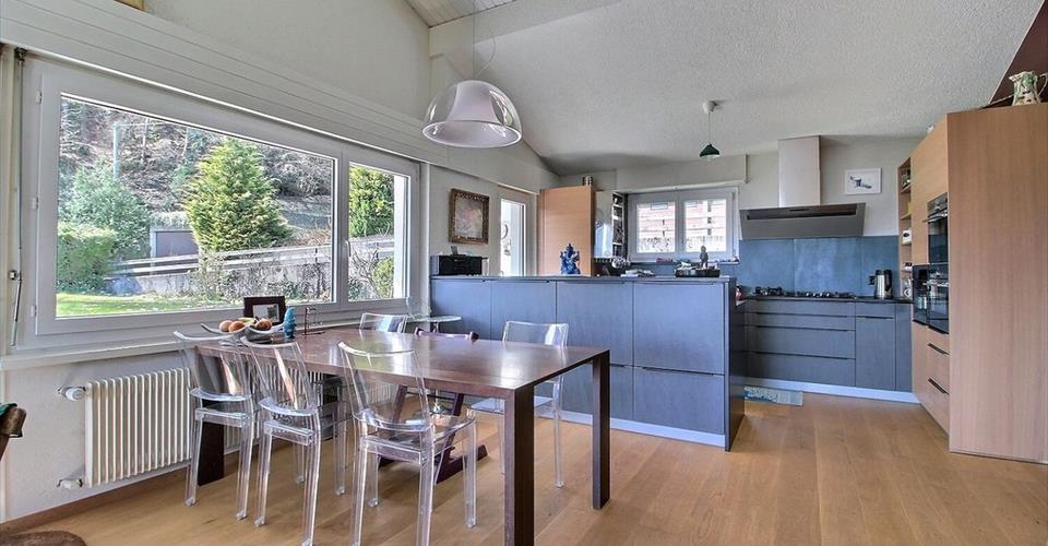 Opportunité à saisir ! Possibilité de transformer une pièce au rez pour transformer la partie du bas en studio avec entrée indépendante. Un devis pour les travaux a été fait pour les personnes qui seraient intéressées. Cela pourrait être un potentiel de location ou alors pour développer une activité indépendante. Dans le cas d’une transformation de la pièce en question, il faudra vérifier avec la commune pour une éventuelle demande de mise à l’enquête. Si vous recherchez du calme et un endroit paisible, cette maison est parfaite pour vous ! Le jardin est spacieux et offre énormément de possibilité et le terrain est plat. Elle est située au Mont-Pèlerin, le transport scolaire est à 1 min. à pied, l’école est à Chardonne et il y a la cantine à midi. Le funiculaire est à 12 min. à pied. Vevey est à 11 min., Montreux 20 min., Lausanne 30 min. L’autoroute est à 9 min. Cette villa individuelle de 5,5 pièces avec une surface habitable de 127m, se décline comme suit : Rez inférieur : 1 chambre avec une salle de bains à l’italienne et une fenêtre, douche, wc et lavabo 1 spacieux espace pour la colonne de lavage et séchage. Possibilité de faire des travaux pour transformer le local de stockage à côté de la chambre pour en faire une cuisine et un accès indépendant. Un espace terrasse devant la maison en fait un bien indépendant pour ceux qui souhaiteraient aller dans ce sens. 1 accès au garage 1 abri atomique qui fait office de stockage 1 local de stockage accès depuis l’extérieur 1 local technique et cave (derrière le garage) Rez-supérieur : 1 séjour avec poêle de chauffage 1 espace à manger avec accès sur la terrasse et le jardin 1 cuisine spacieuse avec beaucoup de places de rangement très fonctionnelles, un plan de travail en pierre naturelle et un accès sur la terrasse et le jardin 1 belle chambre parentale avec sa salle de bains privative, wc, douche et lavabo, ainsi qu’un accès sur un balcon avec une belle vue à découvrir ! 2 chambres avec un accès sur le balcon et une belle vue à découvrir ! 1 salle de bains avec une baignoire, wc et lavabo 1 trappe avec un galetas Extérieur : 1 spacieuse terrasse dallée 1 spacieux jardin idéal pour une famille (parcelle de 1041m) 1 garage avec porte électrique 3 places de parc extérieures Informations complémentaires : Charges eau chaude et chauffage 120.- par mois en moyenne ! Parcelle de 1041m Construction traditionnelle de 1974 rénovée Panneaux solaires Chauffage au bois changé en 2012 Cuisine rénovée en 2020 2 salles de bains rénovées en 2012 Fenêtres changées en 2010 Façades isolées en 2012 Parquets rénovés en 2020 Peintures en 2012 Orientation sud-ouest