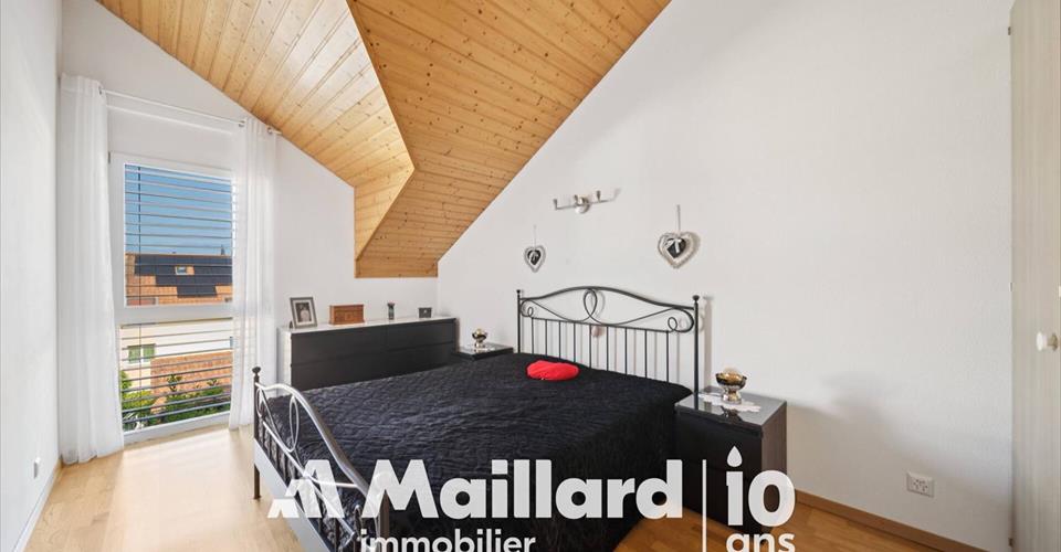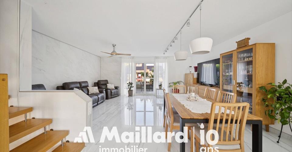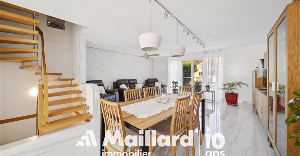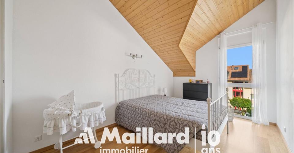 Yverdon-les-Bains, entre nature et qualité de vie Depuis 1500 ans, Yverdon-les-Bains allie art de vivre et patrimoine. Située au bord du lac de Neuchâtel, elle bénéficie d’un cadre naturel exceptionnel, avec notamment la Grande Cariçaie, la plus vaste réserve naturelle lacustre de Suisse. Accessibilité La gare se trouve à 5 minutes en voiture ou 18 minutes en bus (lignes 602/603). Lausanne et Neuchâtel sont accessibles en 22 et 18 minutes en train. L’autoroute est à moins de 5 minutes en voiture. Éducation Les écoles sont réparties dans la ville, avec un gymnase à Cheseaux-Noréaz et le CPNV pour les formations professionnelles. Garde d’enfants et appuis scolaires sont également disponibles. Commodités La ville offre de nombreux commerces (Migros, Coop, centre commercial En Chamard), services de proximité (poste, médecins, banques, etc.) et restaurants. Le centre-ville est accessible en 5 minutes. Vie culturelle et sportive Yverdon propose une riche offre culturelle (musées, festivals, spectacles) et des installations sportives modernes (piscines, terrains, patinoire, activités lacustres). La nature alentour invite à la randonnée et au vélo. En chiffres : District : Jura-Nord Vaudois Habitants : 30 221 (fin 2023) Altitude : 433 m Surface : 1354 ha Taux d’imposition : 75 points Site web : yverdon-les-bains.ch Villa contiguë rénovée à Yverdon dans cadre verdoyant Maillard Immobilier Yverdon vous propose, en Exclusivité, cet agréable logement situé dans un quartier très calme et idéal pour les familles. A quelques minutes du centre-ville et des axes autoroutiers, sa situation en fait un objet parfait pour les personnes en quête d’espace et de verdure. La PPE a été construite en 2009 et le logement a été rénové en 2023. Il est réparti sur 2 niveaux + sous-sol et compte 3 chambres, 3 salles d’eau, une cuisine généreusement agencée – ouverte sur le séjour – et de nombreux rangements. Entretenu avec beaucoup de soin, ce bien ne nécessite aucun travaux. Une terrasse orientée Ouest vous permettra de profiter des belles journées ensoleillées. 2 places de parc dont une intérieure et une extérieure complètent ce bien. Le choix des fintions en fait un objet rare et baigné de lumière naturelle tout au long de la journée. A visiter sans tarder ! Sous-Sol Entièrement chauffé d’environ 62 m² Grand espace disponible 2 caves Buanderie Douche / WC Accès au parking souterrain 1 place de parc intérieure avec possiblité d’ajouter une borne de recharge pour véhicule électrique 1 place de parc extérieure devant l’entrée Rez-de-chaussée Pièces de vie d’environ 60 m² Hall d’entrée WC visiteurs Réduit / Economat Grande cuisine agencée et ouverte Salle à manger / Séjour Terrasse orientée Ouest Etage Pièces de nuit d’environ 60 m² Suite parentale avec dressing et salle de bains attenants 2 chambres à coucher Salle de douche / WC