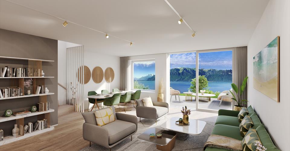 Au cœur du Lavaux dans le district de la Riviera, région classée au patrimoine mondial de l’UNESCO pour la richesse de ses paysages, la Résidence Panorama Châno propose trois villas contiguës de 5.5 pièces. Situées dans un quartier résidentiel paisible de Corseaux, ces propriétés se distinguent par un emplacement rare dans une commune où les biens de ce standing sont particulièrement recherchés. Conçues avec une attention particulière à l’esthétique et à la fonctionnalité, les villas se caractérisent par une architecture contemporaine . Chaque villa bénéficie d’une terrasse et d’un jardin privatif soigneusement aménagé, prolongeant les espaces de vie vers l’extérieur. Deux places de parc intérieures complètent les aménagements, assurant confort et sécurité au quotidien. Sur le plan énergétique, les villas répondent aux standards les plus actuels grâce à un système de chauffage par pompe à chaleur (PAC) et l’installation de panneaux solaires, garantissant une consommation raisonnée et durable. Le budget des finitions correspond à du haut standing et personnalisable selon vos envies. La vue panoramique sur le lac Léman et les Alpes, dégagée, confère à ces résidences un cadre de vie très apprécié. À cela s’ajoute une accessibilité aisée aux rives du lac qui se trouve à quelques pas, ainsi qu’une proximité avec Vevey et le siège de Nestlé, ses infrastructures, ses commerces et ses établissements scolaires. Ces trois villas offrent ainsi un équilibre entre confort contemporain, cadre naturel préservé et situation géographique privilégiée. Villa B (sud) : CHF 2’265’000.- 2 parking intérieurs: CHF 100’000.- Total : CHF 2’365’000.- avec 2 parking intérieurs