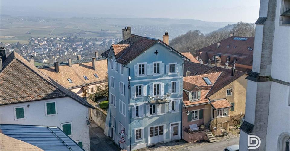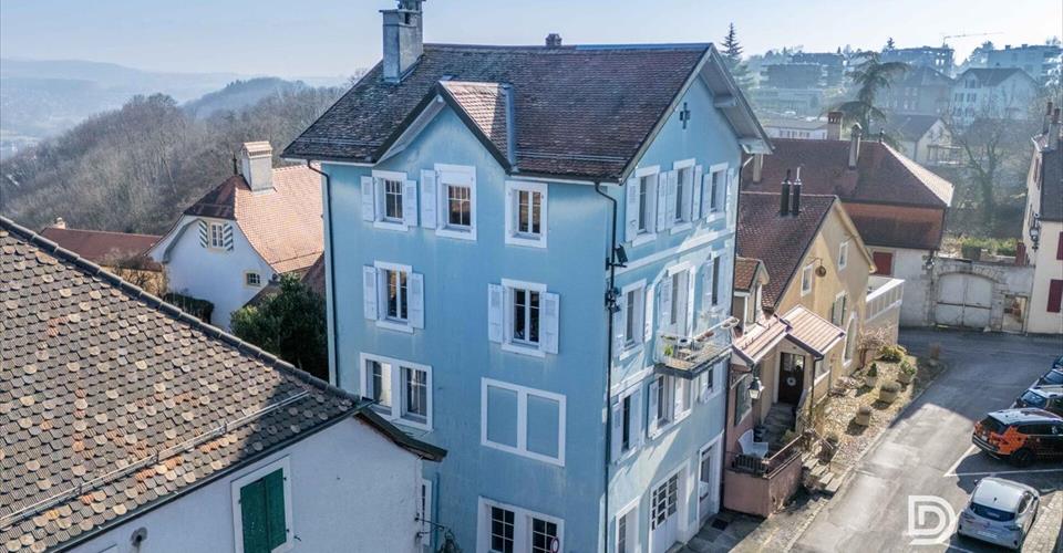 DOSSIER COMPLET SUR DEMANDE Informations clés : 5.5 pièces réparties sur 6 niveaux 4 pièces lumineuses et spacieuses 2 salles d’eau (possibilité d’une 3e) Surface habitable : ~244 m² Surface utile : ~264 m² Surface du terrain : ~75 m² Année de construction : 1932 Rénovations majeures : vitrages, modernisation de la cuisine en 2009, chaudière en 2022, isolation du galetas en 2023 et fibre optique en 2025 Prix de vente: CHF 1’150’000 .- Une immeuble villageois de caractère au coeur de Cossonay Située dans le centre historique de Cossonay, cette maison de village pleine de charme offre un cadre de vie unique. Anciennement divisée en trois appartements, elle a été transformée en un logement spacieux de 5.5 pièces, idéal pour une famille en quête d’authenticité et de confort. Un fort potentiel à révéler ! Des travaux de rénovation sont à prévoir afin d’en exploiter pleinement les atouts : Pour les familles : Modernisation des installations sanitaires Rafraîchissement des finitions intérieures Possibilité d’aménager le galetas et de transformer l’atelier en garage Pour les investisseurs : Potentiel de créer jusqu’à 3 logements distincts (compteurs électriques déjà séparés) Un intérieur aux multiples possibilités Répartie sur 6 niveaux, la maison propose des espaces variés et adaptables : Sous-sol : vaste espace idéal pour des caves ou du stockage Rez-de-chaussée : atelier lumineux d’ ~50 m², offrant des options d’aménagement en espace de travail, studio ou garage 1er étage : espace polyvalent pouvant servir de bureau ou de studio avec salle de bain attenante et cuisine à reconfigurer 2e étage : belle pièce à vivre lumineuse avec cuisine ouverte, salle à manger, balcon, salle de douche avec WC et pièce supplémentaire 3e étage : deux chambres, un bureau et une salle de bain ouverte Combles : espace d’environ ~ 20 m² avec isolation Un emplacement privilégié Nichée dans un quartier paisible, cette maison bénéficie d’un accès immédiat à toutes les commodités : commerces, écoles, restaurants, piscine, cinéma, et transports publics. Profitez de la vie de village dynamique de Cossonay tout en restant proche des grands axes. Cossonay offre un cadre de vie pratique avec ses supermarchés, commerces de proximité, services de santé et établissements scolaires pour tous les âges, le tout à quelques pas de la maison. Un projet idéal pour les familles et les investisseurs Que vous cherchiez une résidence principale ou un projet de réaménagement, cette maison offre un fort potentiel. Des travaux de rafraîchissement permettront d’exploiter pleinement ses atouts. Contactez-nous dès aujourd’hui pour organiser une visite et découvrir tout le potentiel de cette maison de caractère au coeur de Cossonay. English: FULL INFORMATION ON REQUEST Key information: 5.5 rooms spread over 6 levels 4 bright, spacious rooms 2 bathrooms (possibility of a 3rd) Living area: ~244 m² Useable area: ~264 m² Land area: ~75 m² Year of construction: 1932 Major renovations: replacement of glazing, modernization of kitchen in 2009, boiler renovated in 2022, galetas insulated in 2023 and fiber optics in 2025 Selling price: CHF 1’150’000 . – Village house with character in the heart of Cossonay Located in the historic center of Cossonay, this charming village house offers a unique living environment. Formerly divided into three apartments, it has been transformed into a spacious 5.5-room dwelling, ideal for a family seeking authenticity and comfort. Great potential to be unlocked! Renovation work is required to fully exploit its assets: For families: Modernization of sanitary installations Refreshing of interior finishes Possibility of converting the attic and workshop into a garage For investors: Potential to create up to 3 separate dwellings (electric meters already separate) An interior with multiple possibilities Spread over 6 levels, the house offers varied and adaptable spaces: Basement: vast space ideal for cellars or storage Ground floor: bright workshop of approx. 50 m², offering options for conversion into a workspace, studio or garage 1st floor: versatile space that can be used as an office or studio with adjoining bathroom and kitchen to be reconfigured 2nd floor: beautiful, bright living room with open-plan kitchen, dining room, balcony, shower room with WC and additional room 3rd floor: two bedrooms, an office and an open-plan bathroom Attic: isolated space of approx. 20 m², which can be converted to suit your needs A privileged location Nestled in a peaceful area, this house benefits from immediate access to all amenities: shops, schools, restaurants, swimming pool, cinema, and public transport. Enjoy the dynamic village life of Cossonay while remaining close to the main roads. Cossonay offers a convenient living environment with its supermarkets, local shops, health services and educational establishments for all ages, all within walking distance of the house. An ideal project for families and investors Whether you are looking for a primary residence or a redevelopment project, this house offers great potential. Refreshment work will make it possible to fully exploit its assets. Contact us today to arrange a viewing and discover the full potential of this characterful house in the heart of Cossonay.