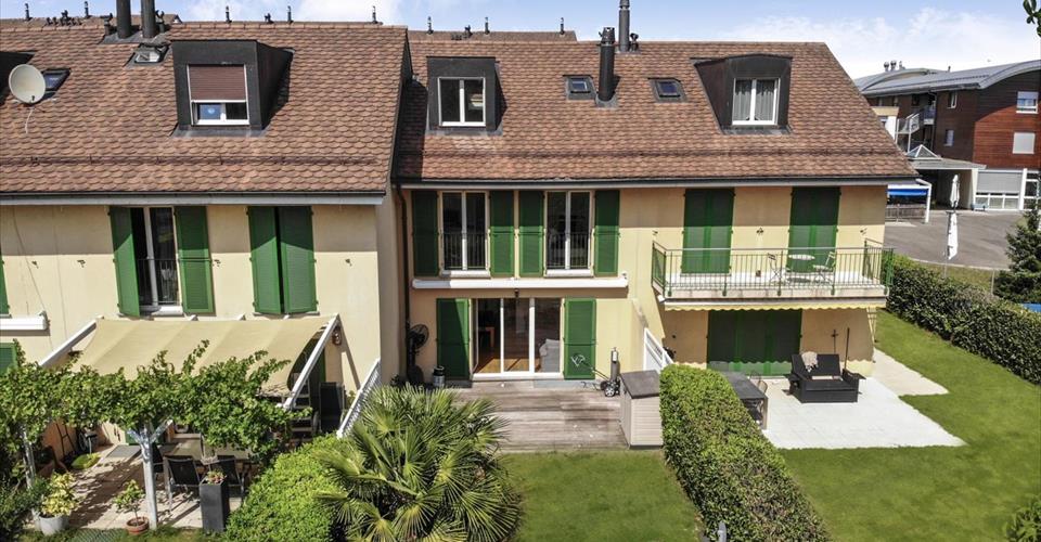 BC IMMO vous propose une belle et spacieuse maison idéalement située au centre du charmant village de Crassier. Ce bien saura vous séduire par ses volumes généreux et son agréable jardin orienté sud-ouest, offrant un ensoleillement idéal. Au rez-de-chaussée, une cuisine ouverte, entièrement rénovée en 2012 et parfaitement équipée, s’ouvre sur l’espace repas et le séjour convivial. Ses larges baies vitrées apportent une belle luminosité à l’espace de vie et permettent un accès direct à la terrasse et au jardin. Un vestiaire et des WC visiteurs complètent ce niveau. À l’étage, trois chambres lumineuses se partagent une grande salle de bain. Les combles accueillent une somptueuse suite parentale occupant tout l’étage, composée d’une grande chambre, d’une salle de bain privative et de rangements intégrés. En sous-sol, vous découvrirez une vaste salle de jeux, une salle de douche, ainsi qu’une cave, un espace buanderie et les locaux techniques. La terrasse et le jardin permettent de se détendre dans un environnement calme et paisible, à l’abri des regards. Deux places de parc pouvant accueillir deux grands véhicules complètent ce bien. À proximité immédiate des commodités et des transports en commun. https://www.bcimmo.ch/fr/acheter/maison-avec-jardin-au-centre-du-village-2195