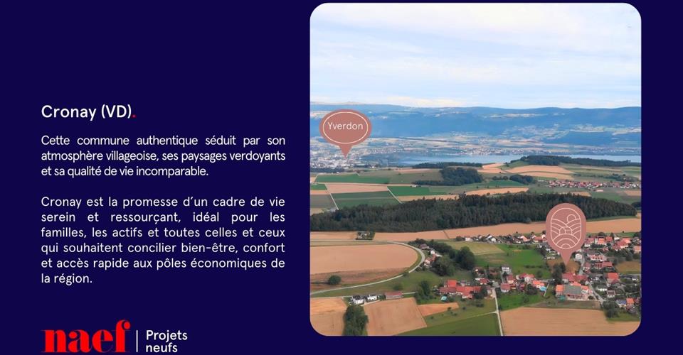 Composée de 7 lots exclusifs de 4.5 et 5.5 pièces, La Colline séduit par son alliance subtile entre charme villageois et confort contemporain, au coeur de la commune de Cronay, à seulement 10 minutes d’Yverdon-les-Bains et de toutes ses commodités. Le projet propose 4 villas mitoyennes, 2 villas individuelles et 1 fermette rénovée, pensées pour s’adapter à tous les styles de vie. Chaque bien offre de généreux volumes, un jardin privatif, 3 places de parking incluses et des finitions entièrement personnalisables. Le bien se compose ainsi : 1. Surface habitable : env. 140 m² 2. Grand jardin privatif : env. 265 m² 3. Terrasse + balcon : env. 32 m² 4. 3 places de parc couvertes incluses 5. Orientation optimale et belle luminosité 6. Cadre privilégié, idéal pour les familles 7. Finitions au gré du preneur Découvrez la promotion sur : www.lacolline-cronay.ch