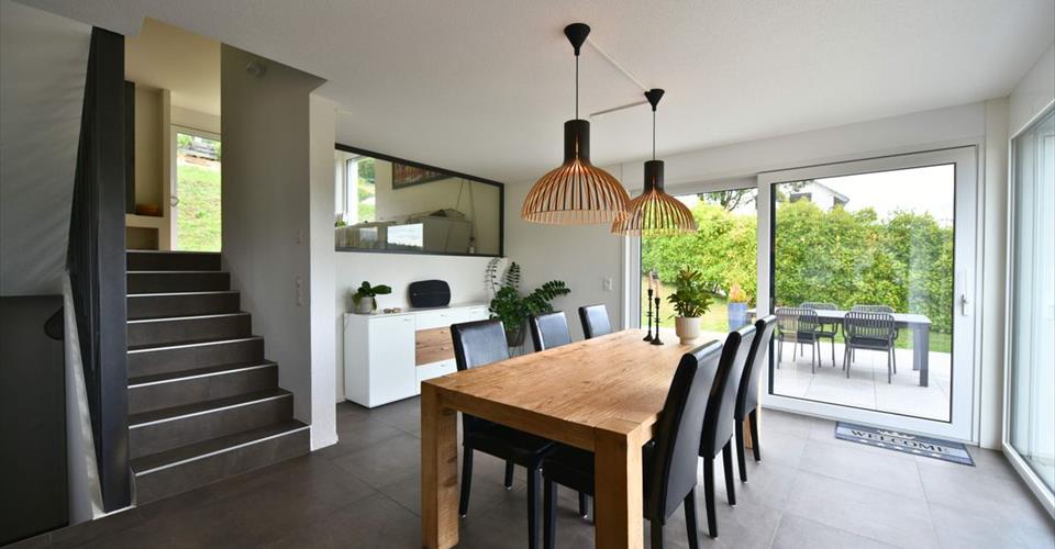 Venez découvrir cette maison jumelée familiale et moderne à Cudrefin, un véritable havre de confort et de luminosité. Construite en 2017, elle combine des espaces de vie généreux et bien pensés avec un extérieur intimiste de 900 m², idéal pour profiter pleinement des moments en famille ou entre amis. Chaque pièce a été conçue pour allier fonctionnalité et esthétisme, offrant un cadre de vie harmonieux où il fait bon vivre. Avec ses volumes ouverts, ses finitions modernes et sa luminosité naturelle, cette maison est prête à accueillir vos plus beaux souvenirs. Points clés : Surface habitable : 176,96 m² Surface du terrain : 900 m² Nombre de chambres : 4 Nombre de salles de bains : 2 WC visiteurs : 1 Pièces : 5,5 Nombre d’étages : 2 Chauffage : pompe à chaleur économique avec fonction de réfrigération Stationnement : 4 places extérieures Année de construction : 2017 Agencement : Rez inférieur : Hall d’entrée accueillant, espace bureau ou chambre d’invité, dressing, local technique, WC et cave-cellier. Ce niveau offre des espaces pratiques pour le rangement et l’organisation de la maison. Rez-de-chaussée : En montant quelques marches depuis le hall, vous accédez à la cuisine et au coin repas, lumineux et convivial pour les repas en famille, qui s’ouvre sur une terrasse, créant un lien agréable avec l’extérieur. Quelques marches supplémentaires mènent au séjour spacieux. Premier étage : Quelques marches vous conduisent à trois chambres confortables, dont une suite parentale avec salle de bain et dressing privatifs. Une salle de bain supplémentaire dessert les autres chambres, assurant confort et intimité pour tous les occupants. Cette maison familiale moderne à Cudrefin allie confort, luminosité et convivialité. Si elle vous séduit, contactez-nous pour organiser une visite et découvrir tout son potentiel.