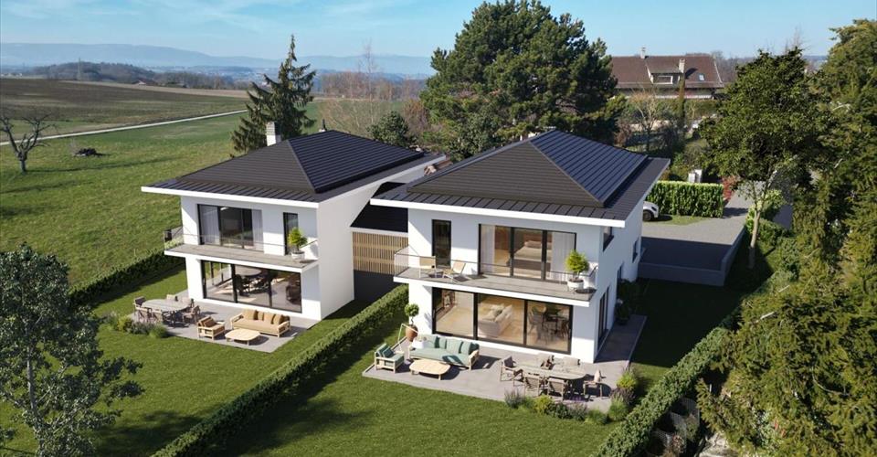 Situées dans la charmante et prisée commune d’Echandens, ces deux villas neuves proposent un cadre de vie privilégié à proximité immédiate de Lausanne, Morges et Bussigny, dans un environnement résidentiel paisible, offrant un très joli dégagement. Conçues avec soin, ces villas allient architecture contemporaine et fonctionnalité. Les volumes généreux, la lumière naturelle omniprésente ainsi que les finitions de standing répondent aux attentes d’une clientèle recherchant confort, discrétion et qualité de vie. Modulable selon les souhaits des futurs acquéreurs, la distribution se fait comme suit : Villas de 5.5 pièces de 180m2 sur 2 niveaux + sous-sol. Demi sous-sol : – Local technique / buanderie – Une cave – Grand disponible aménageable – Possibilité d’agrandir le sous-sol (en option) Rez-de-chaussée : – Hall d’entrée avec espace pour armoire murale – WC visiteurs – Une chambre – Grande cuisine ouverte avec ilot – Séjour lumineux avec accès à la terrasse Etage : – Grand hall – 2 chambres – 1 chambre parentale avec salle de douche et dressing – Une salle de bain avec baignoire, WC et lavabos double – Balcon (en option) La construction répond aux dernières normes en vigueur (chauffage au sol avec pompe à chaleur, panneaux solaires photovoltaïques, triple vitrage) Chaque villa dispose d’une grande terrasse de 42m2 et d’un jardin privatif, avec la possibilité d’y ajouter une piscine. Une place de parc extérieure ainsi qu’un couvert à voiture complètent ce bien. C’est avec plaisir que nous organiserons une visite des lieux à votre convenance et que nous vous recevons sur rendez-vous pour vous présenter ce nouveau projet. Villa A : Vendue Villa B : Fr. 2’090’000