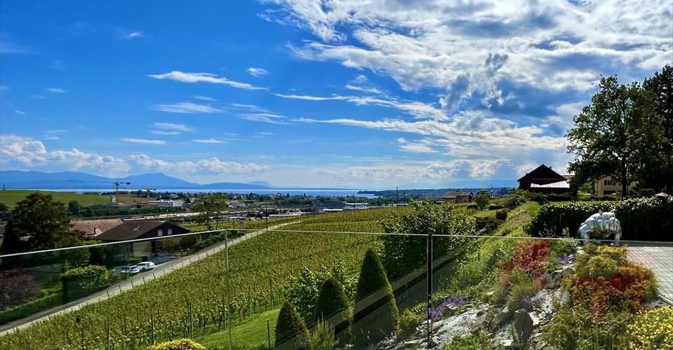 Bienvenus sur un emplacement unique ! Nous vous proposons en exclusivité deux villas contemporaines sur plan, idéalement situées dans un cadre résidentiel privilégié, avec une vue panoramique à couper le souffle, dans un environnement entouré de vignobles. En tirant parti du panorama extérieur, des installations modernes et du respect de l’environnement, découvrez la sensation d’être au coeur de la nature tout en profitant du confort absolu et de prestations haut gamme. Des espaces intelligents Pensées pour conjuguer confort moderne, qualité de vie et vue exceptionnelle, chaque détail a été réfléchi pour offrir un cadre de vie élégant, fonctionnel et baigné de lumière. Les espaces se repartissent comme suit : Une suite parentale de 33m2 avec dressing et salle de douche, 3 autres chambres spacieuses, 3 salles d’eau réparties entre la suite parentale, la zone jour et l’espace nuit, Un grand salon de 54m2 avec vue panoramique, donnant sur la terrasse et la cuisine ouverte, Une cuisine que vous aurez entièrement choisie, parfaitement agencée pour un cadre de vie fonctionnel et convivial, Un sous-sol complet, incluant la pièce technique, des espaces dédiés au rangement et aux loisirs. Chauffage au sol pour que personne n’ait froid aux pieds en se divertissant ! Des villas sur-mesure Parce que vous êtes uniques, désormais votre maison l’est aussi. Dans ce projet, c’est vous qui choisissez chacun des éléments de votre aménagement ; des poignées de portes, aux couleurs sur les murs, à la forme de la baignoire, à la robinetterie, aux sols etc. La cuisine relève du même esprit, puisque vous disposez d’un budget de 41’000 frs, que vous dépensez chez le cuisiniste de votre choix. Et parce que les cadeaux font toujours plaisirs, on vous offre un budget de 20’000 frs pour surclasser les aménagements qui vous plaisent ! Vous l’aurez compris, les villas du Lac ont été conçues pour célébrer le cadre exceptionnel et la vue imprenable sur le lac Léman et les Alpes. Attention, coup de coeur garanti 🙂