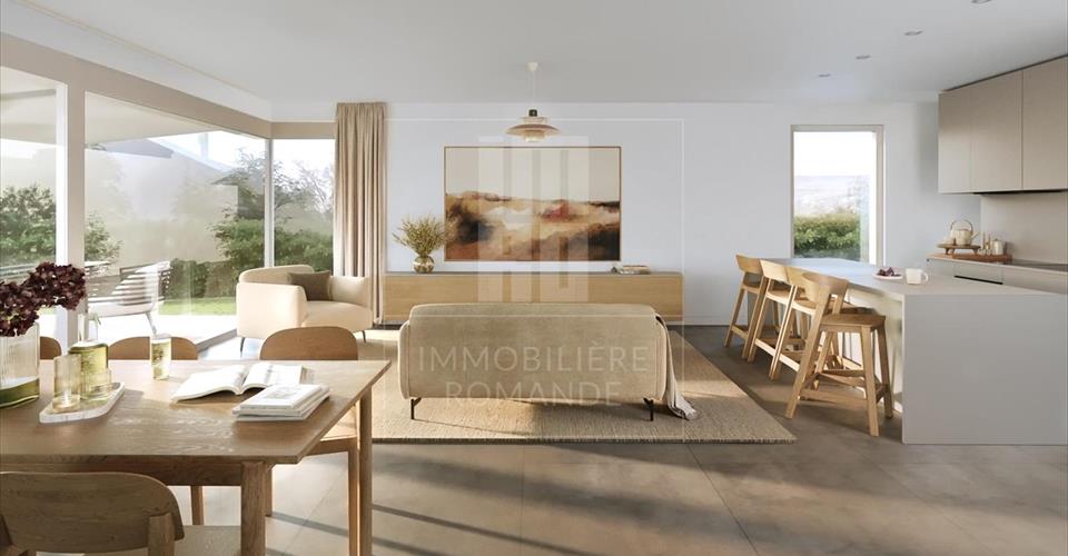 Le projet: Situé dans un quartier résidentiel calme et verdoyant, le projet Les Villas Arboria se compose de quatre villas mitoyennes au design contemporain, pensées pour allier esthétisme et confort. Bénéficiant d’un emplacement privilégié entre ville et nature, à seulement 10 minutes du centre-ville de Lausanne, ce projet offre un cadre de vie harmonieux, proche des commodités urbaines. Typologies : Les villas, d’une surface habitable nette d’environ 140 m2, s’étendent sur trois étages (rez,1er, combles) et un sous-sol. Chaque villa dispose de deux places de parking extérieures privatives et couvertes. Terrasses et jardins : Chaque villa bénéficie d’un jardin et d’une terrasse privative, offrant un cadre paisible propice à la détente. Confort et luminosité : Orientées Sud-Est / Sud-Ouest, les villas bénéficient d’une luminosité naturelle tout au long de la journée. Elles offrent un cadre de vie lumineux et apaisant, parfait pour profiter pleinement d’un magnifique jardin arboré inondé de soleil. Performance énergétique : Labellisé HPE, le projet garantit une performance énergétique remarquable, grâce à l’installation d’une pompe à chaleur et de panneaux photovoltaïques. Espaces modulables : Les villas offrent une flexibilité d’aménagement permettant d’adapter les espaces selon vos besoins et envies. Livraison Printemps 2027 Pour plus de renseignements, contactez notre équipe ?