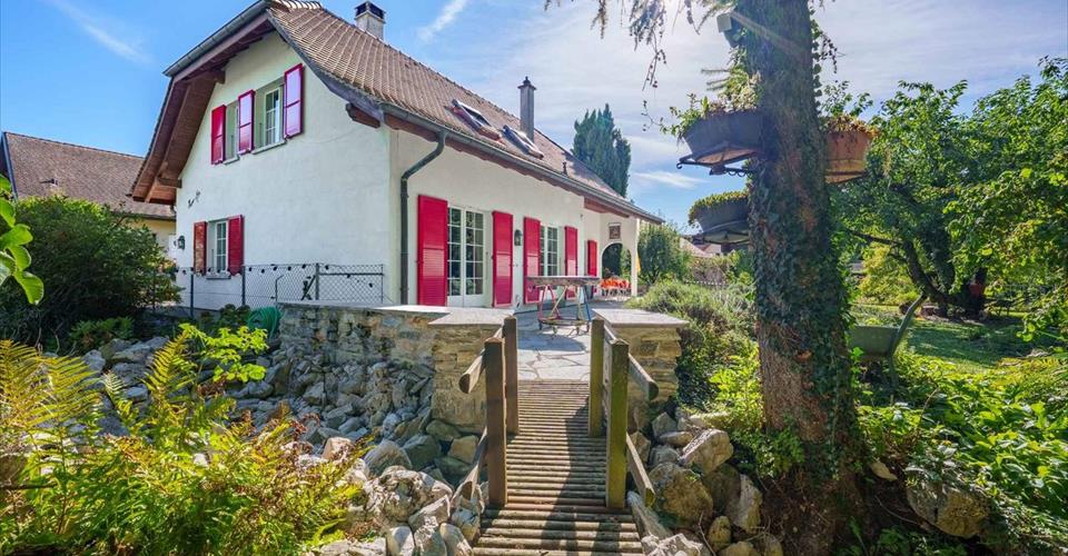 Située dans un quartier résidentiel très calme, au bout d’une impasse sans circulation, cette villa construite à la fin des années 80 offre un cadre de vie paisible et verdoyant, idéal pour une famille ou des amateurs de tranquillité. Édifiée sur une belle parcelle magnifiquement arborée, la propriété séduit par son vaste jardin où se mêlent majestueux séquoias, arbres fruitiers et espace potager, parfait pour les passionnés de nature et de jardinage. La maison, bien entretenue, dispose d’espaces généreux et lumineux. Quelques travaux de modernisation permettront de la mettre au goût du jour tout en profitant d’une structure saine et solide. Le sous-sol réserve d’agréables surprises : un espace bien-être avec sauna, idéal pour se détendre, ainsi qu’une grande cave à vin climatisée et d’une chambre de congélation, atout rare et pratique, notamment pour les amateurs de gastronomie ou les professionnels ayant travaillé dans la restauration. Cette villa allie calme absolu, confort et potentiel d’aménagement, le tout dans l’un des villages les plus recherchés de La Côte. Atouts principaux : Quartier résidentiel exclusif, au calme total Jardin d’exception avec arbres remarquables et potager Spacieuse terrasse (+ de 100 m2) en pierres naturelles vertes des Alpes Valaisannes Spa privé (sauna) Grande cave à vin climatisée d’env. 30 m2 et chambre de congélation Bibliothèque murale artisanale en marqueterie Maison en bon état, à moderniser selon vos goûts Proximité du lac, des écoles et des commodités de la Côte