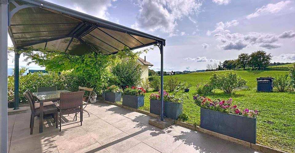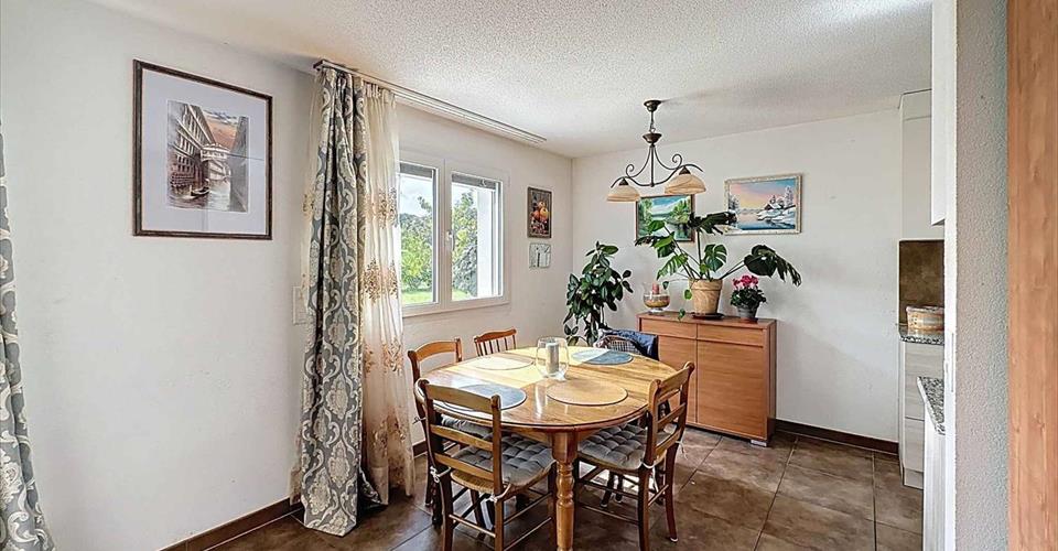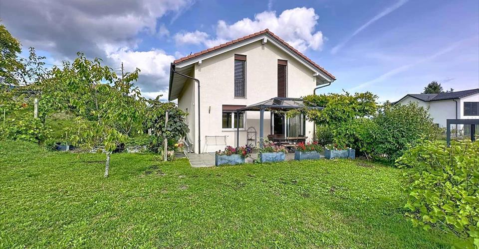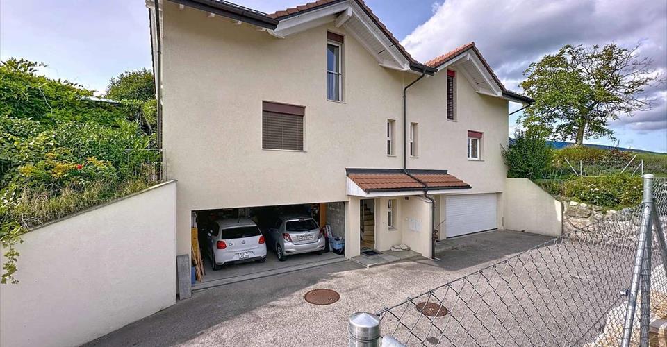 Située dans le charmant village de Gimel, à quelques encablures des commerces de proximité et d’un collège, vous serez séduit par cette jolie maison mitoyenne de 4.5 pièces. Erigée en 2011 et très bien entretenue au fil des ans, elle offre un terrain d’env. 535 m2 et une surface habitable d’env. 130 m2 répartie sur trois niveaux. Accessible par une entrée privative, le rez-inférieur dessert un double garage, une cave ainsi qu’un local technique. Le rez-supérieur offre un espace lumineux comprenant un séjour avec cheminée, une cuisine ouverte entièrement équipée, une buanderie / cellier, un toilette invité ainsi qu’une terrasse exposé Ouest. L’espace nuit, situé au premier étage, se compose de trois chambres à coucher, dont une suite parentale avec salle de douche privative, et une deuxième salle de bains. Cette maison contemporaine et bien agencée saura répondre aux attentes d’une famille recherchant espace, tranquillité et qualité de vie.